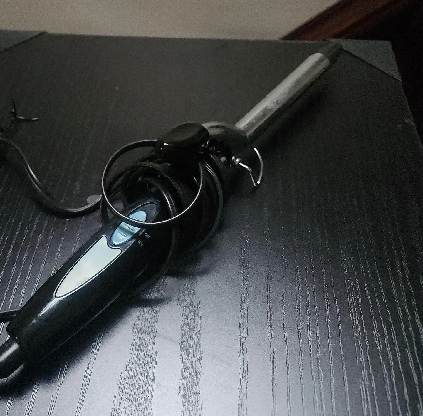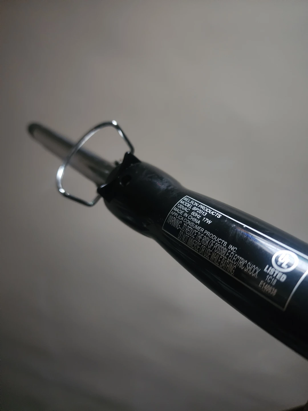 Selling a curling iron from Salon Products in used but good condition. It's black and has 3 heat settings for hi, low, and off. Model number is BP820. It is 17W.