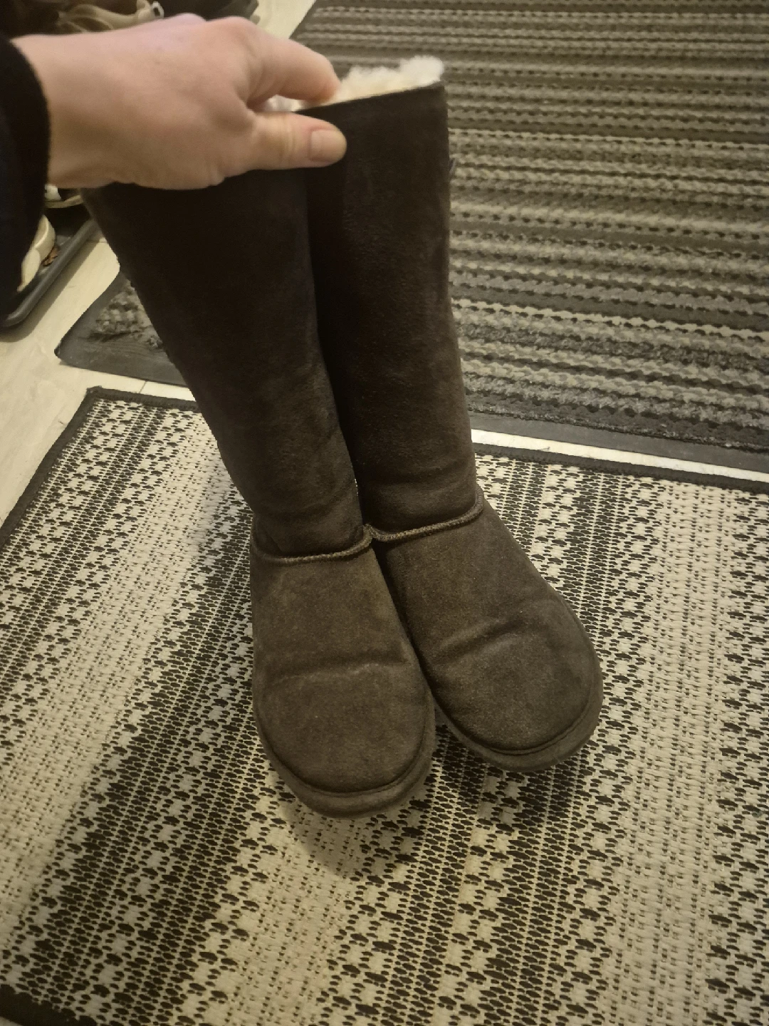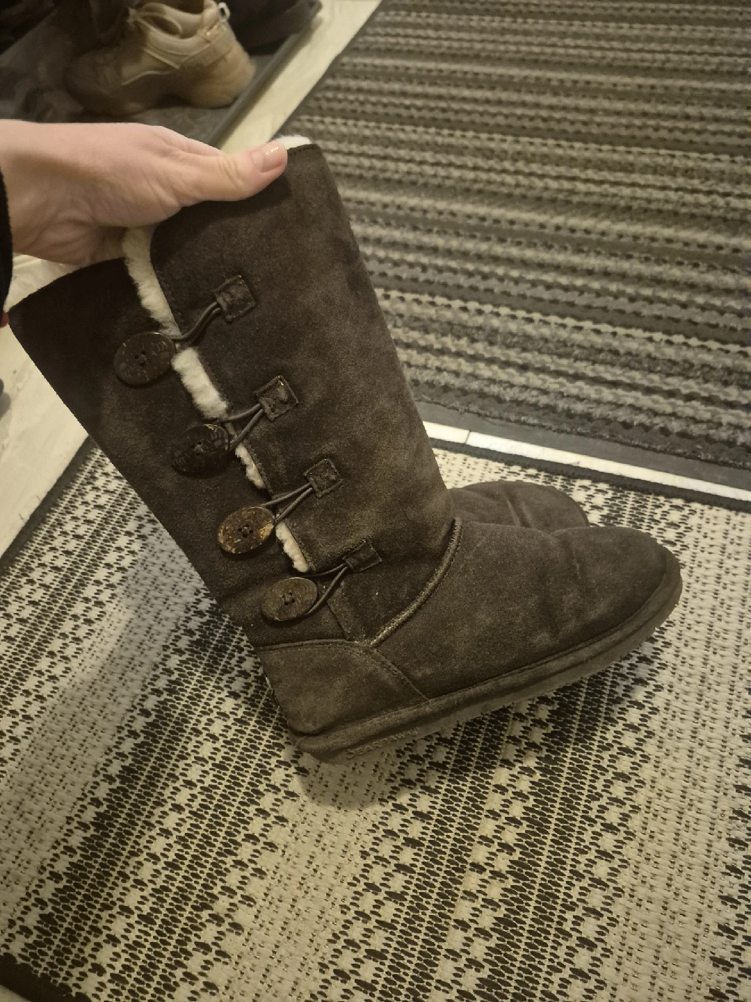 Selling a pair of Bearpaw boots! They're a nice brown colour and made of suede. They have some cute button details on the side too. Perfect for the colder weather!