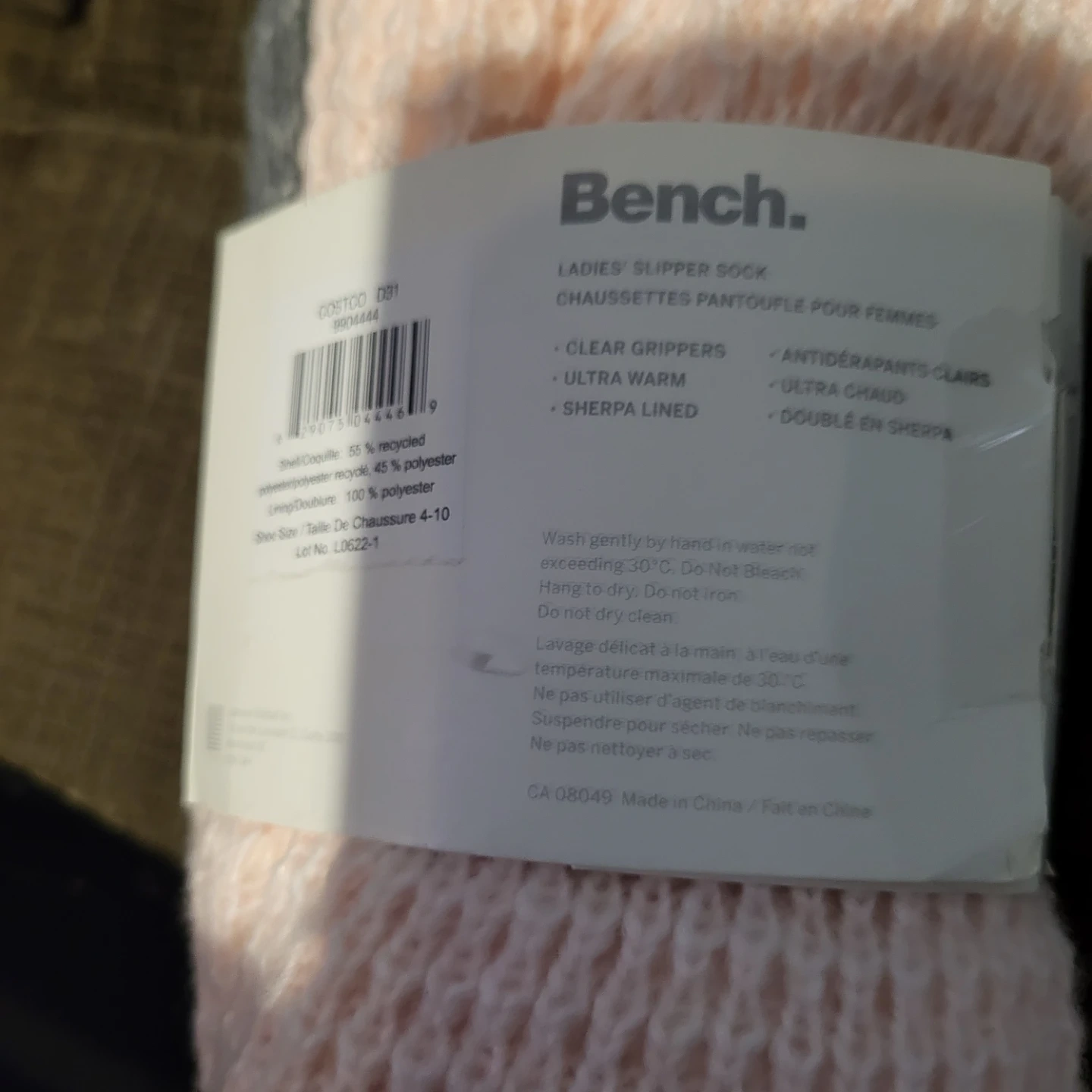 Here are some super cozy Bench ladies' slipper socks! They're size 4-10 and feature clear grippers and a sherpa lining to keep your feet warm and secure. Made with recycled yarn, these socks are both comfy and eco-friendly