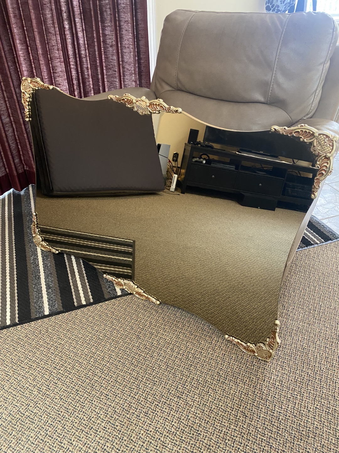 Selling a lovely wall mirror with an ornate gold frame. It's in great condition and would add a touch of elegance to any room. The size is perfect for a hallway or bedroom. Ready to find a new home!