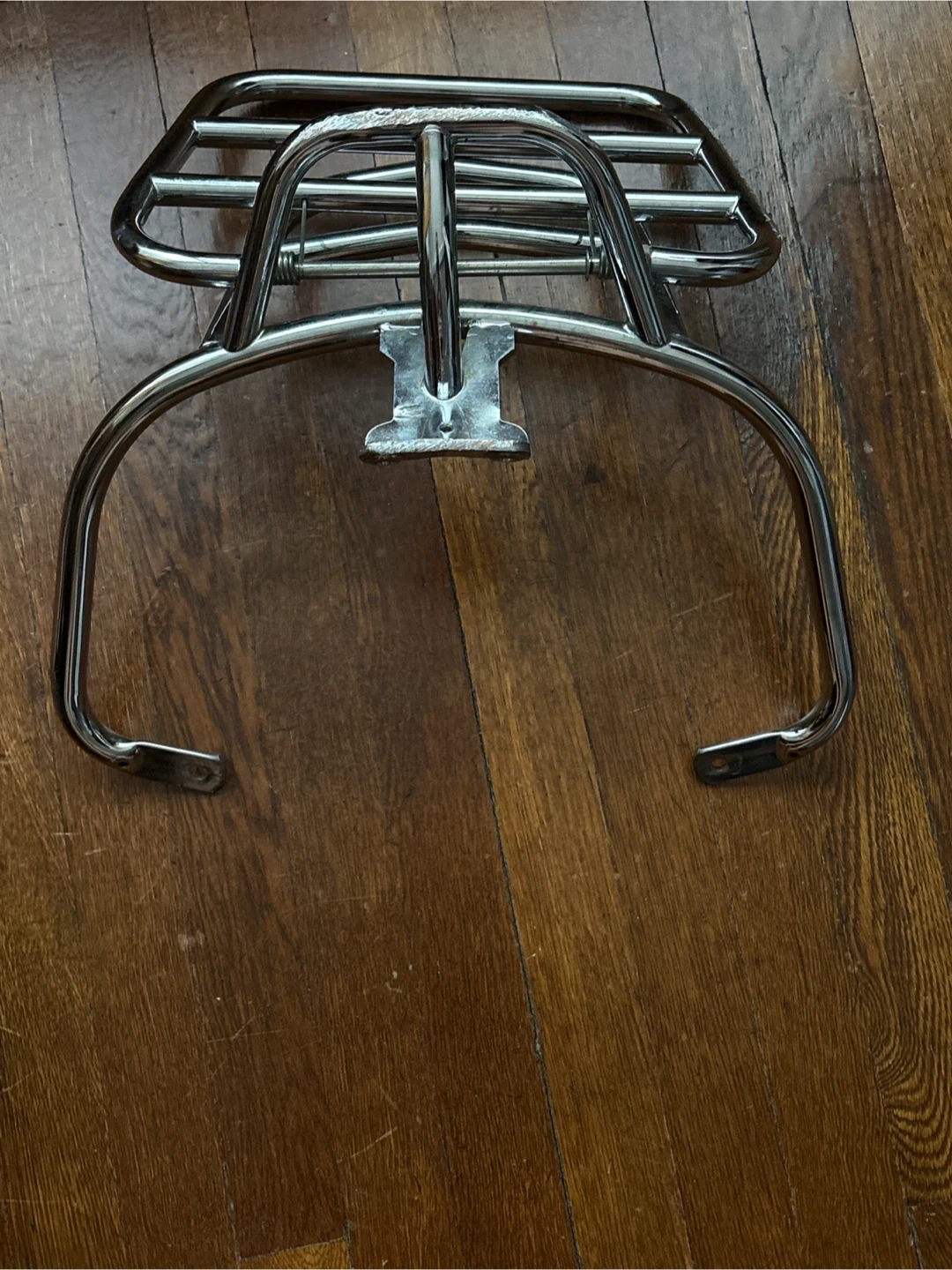 Selling a VESPA original chrome luggage rack, perfect for your Vespa! It has some visible wear and scratches, as shown in the photos. Still sturdy and functional!