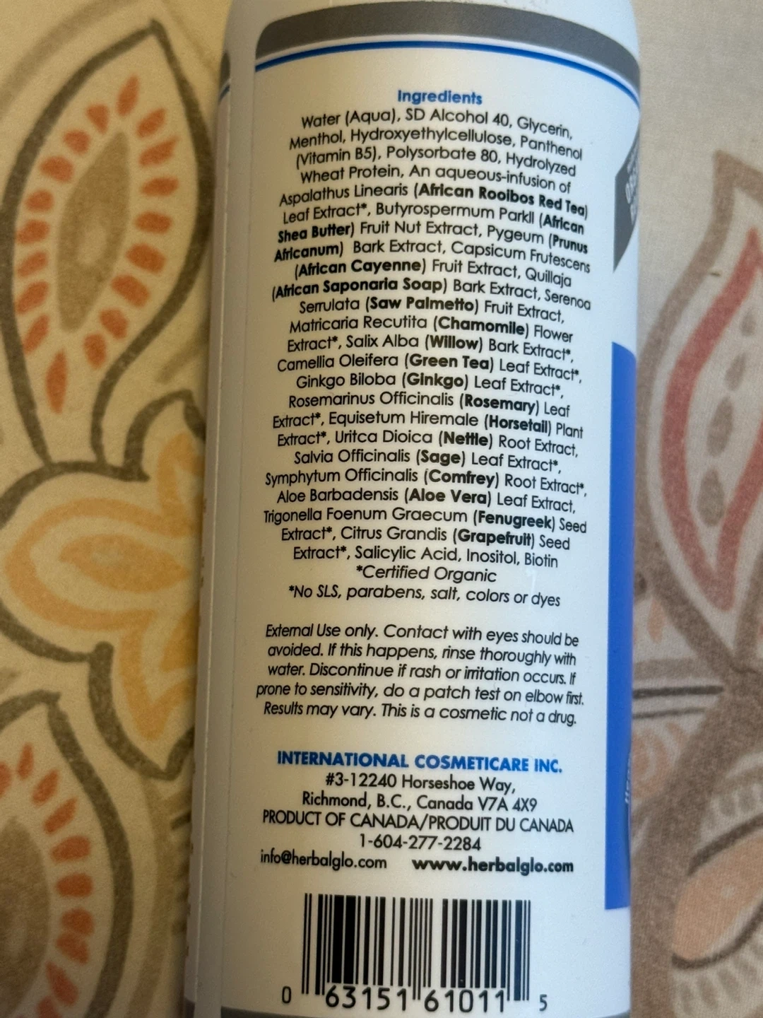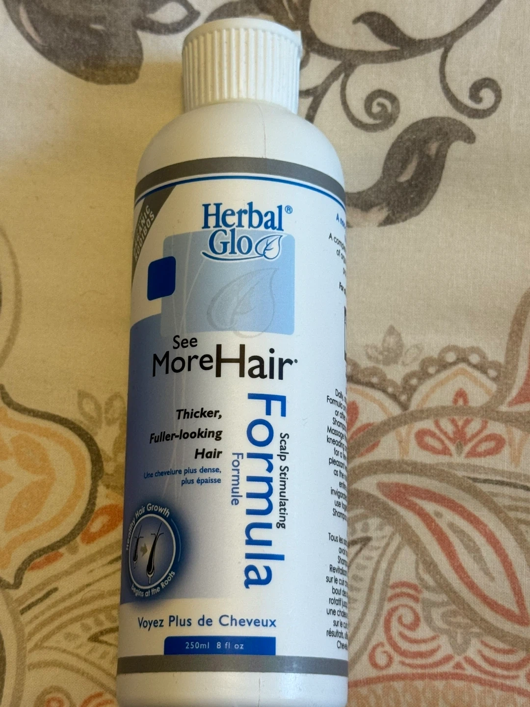 bottle of Herbal Glo See MoreHair Scalp Stimulating Formula. It's designed to help you achieve thicker, fuller-looking hair! This formula contains a blend of organic botanical extracts, proteins, and vitamins. Apply daily to your scalp, massaging thoroughly, for a pleasant warm and stimulating tingle as the nutrients are absorbed. Bought from healthy planet health food store. Brand new. Never used.