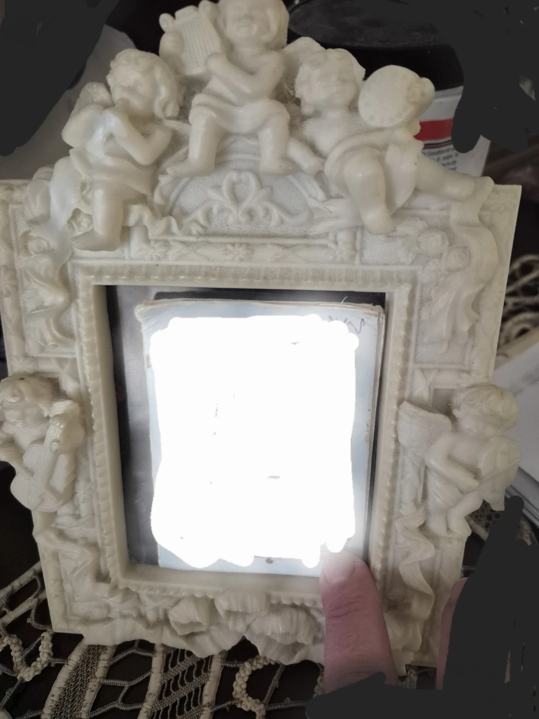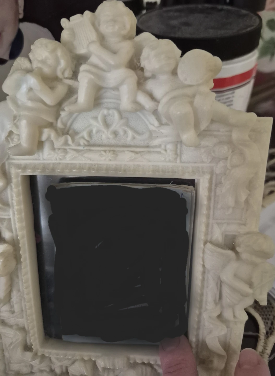 A beautiful cherub picture frame, perfect for adding a touch of whimsy to any room! It's in great condition and ready to display your favourite memories