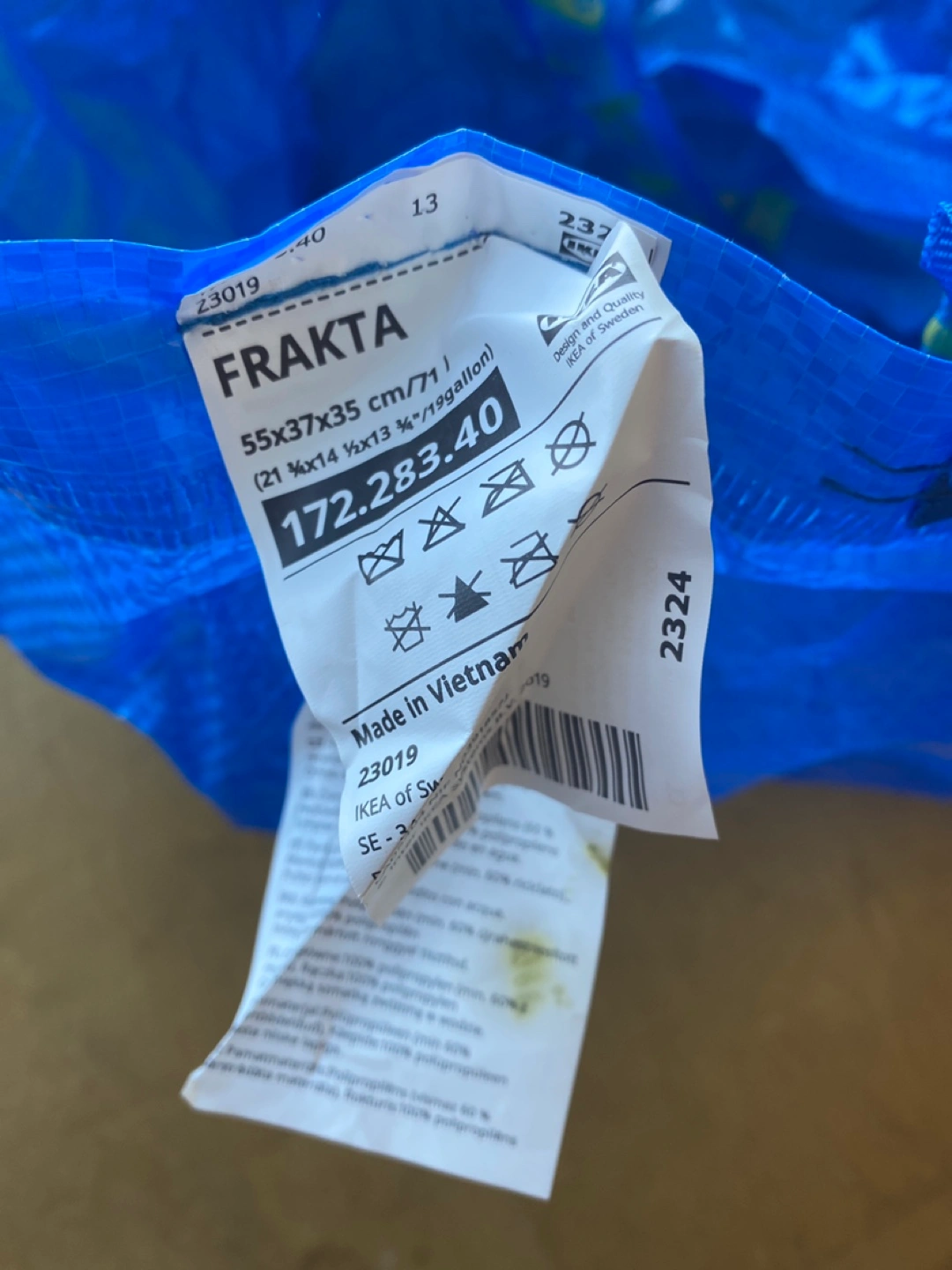 Large blue reusable bag.