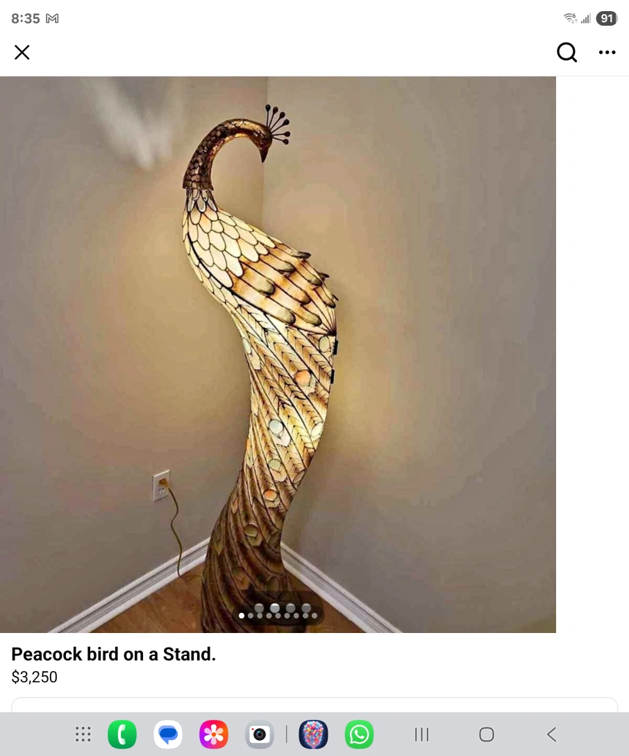 Selling a unique peacock bird floor lamp. It's a beautiful piece that adds a touch of elegance to any room. Originally priced at $3,250 Asking $2000