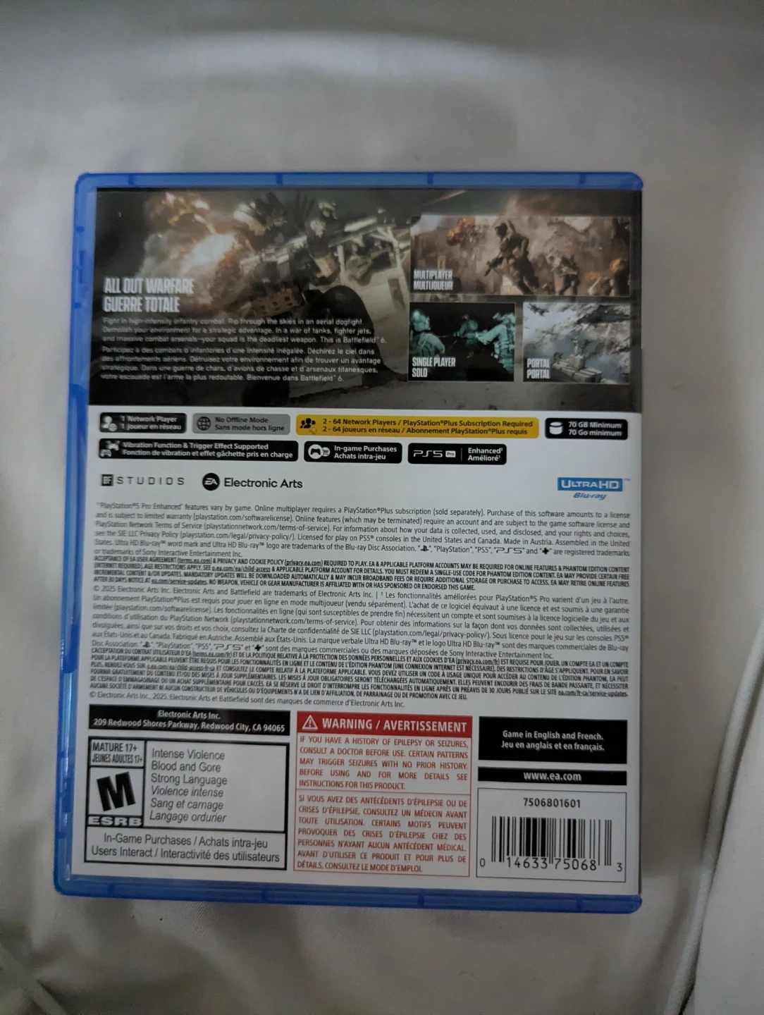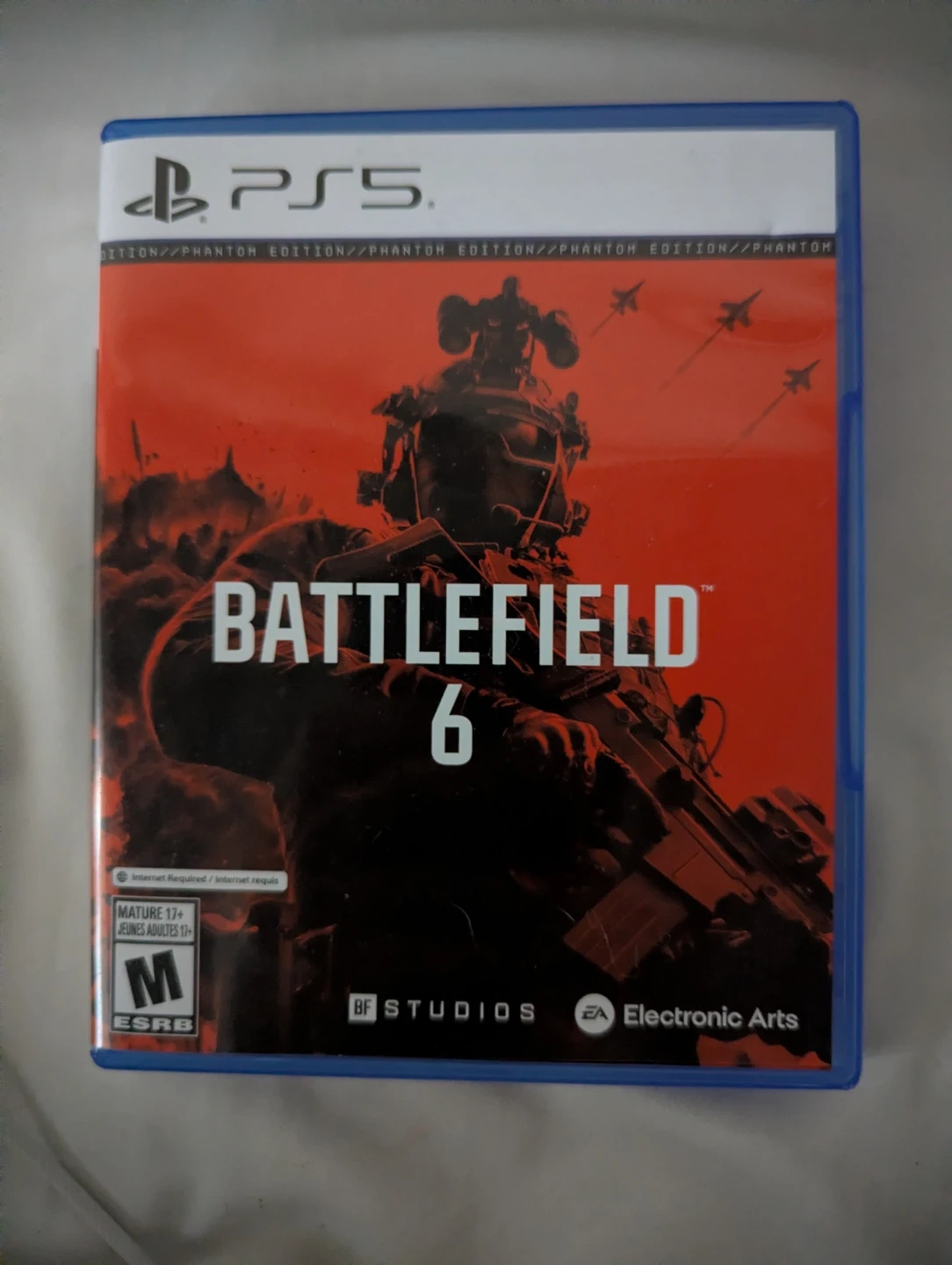 Battlefield 6 Phantom Edition for PlayStation 5. This game includes online multiplayer and solo play options. Rated M for Mature 17 plus