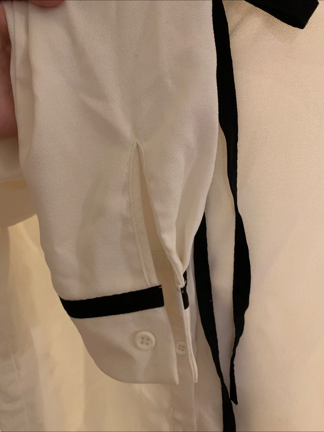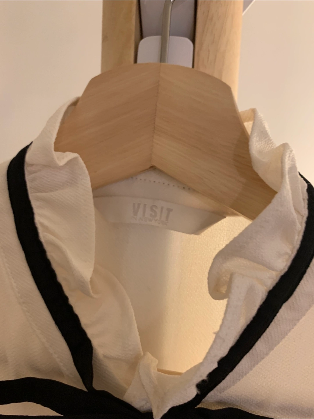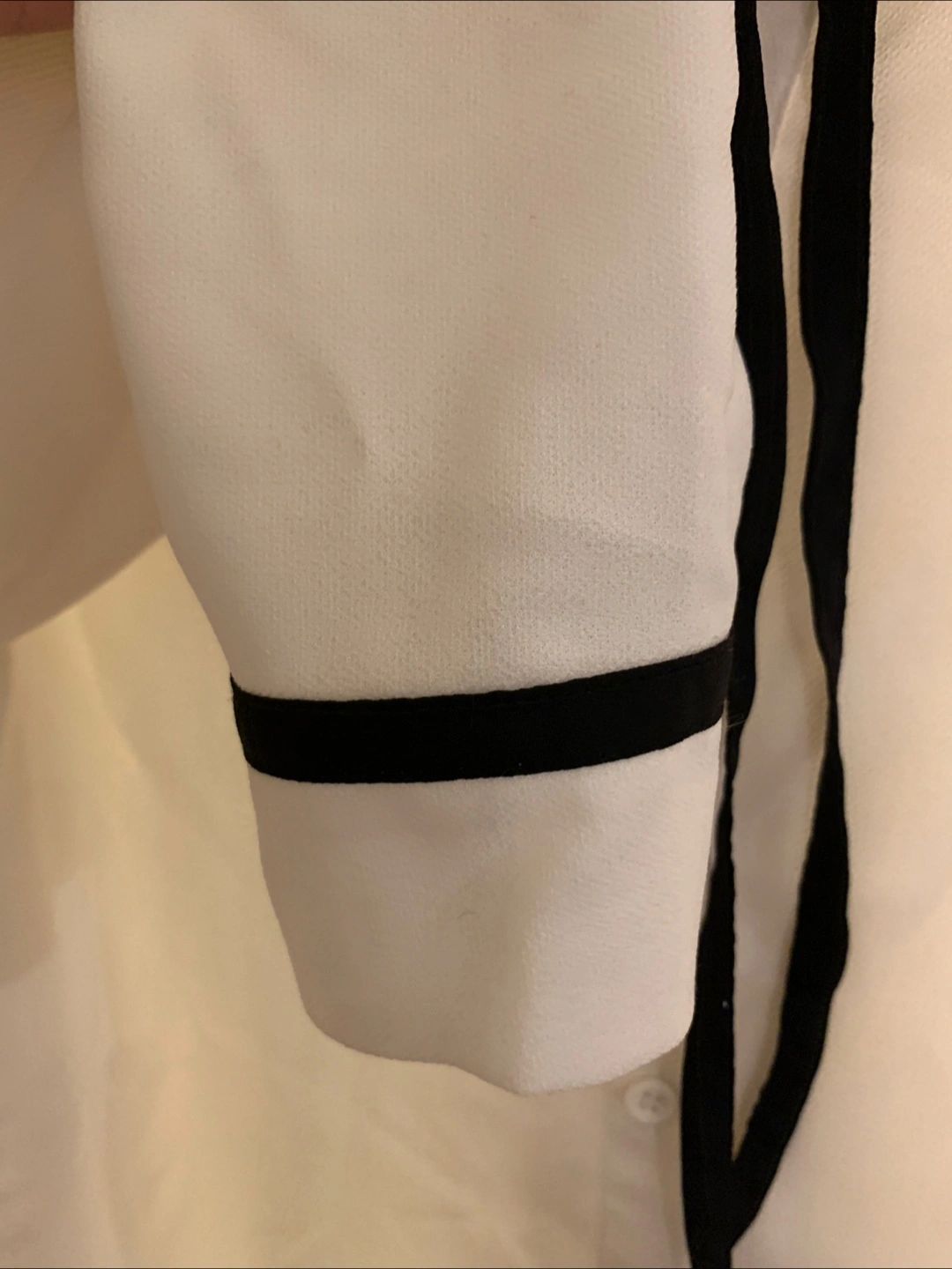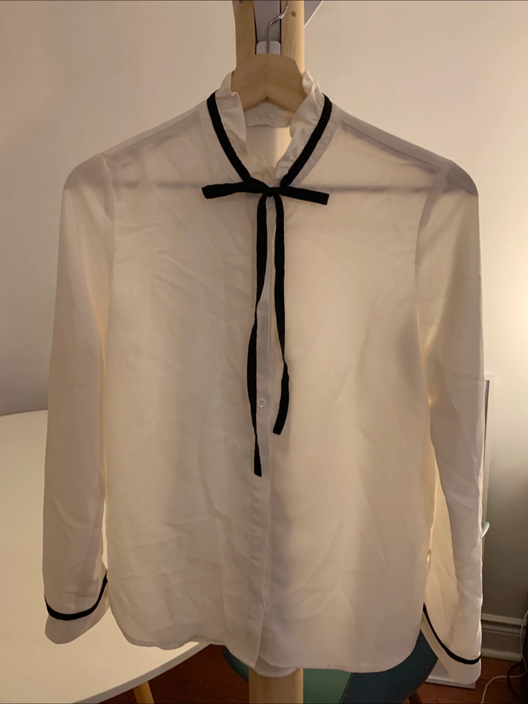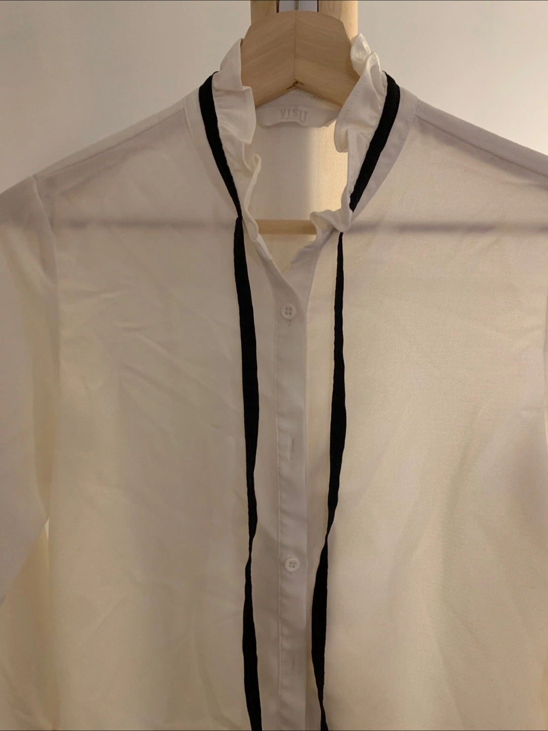 Selling a Visit In Newyork blouse. It's a size 55 and made of 100% polyester. It's a beautiful white colour with black detailing!