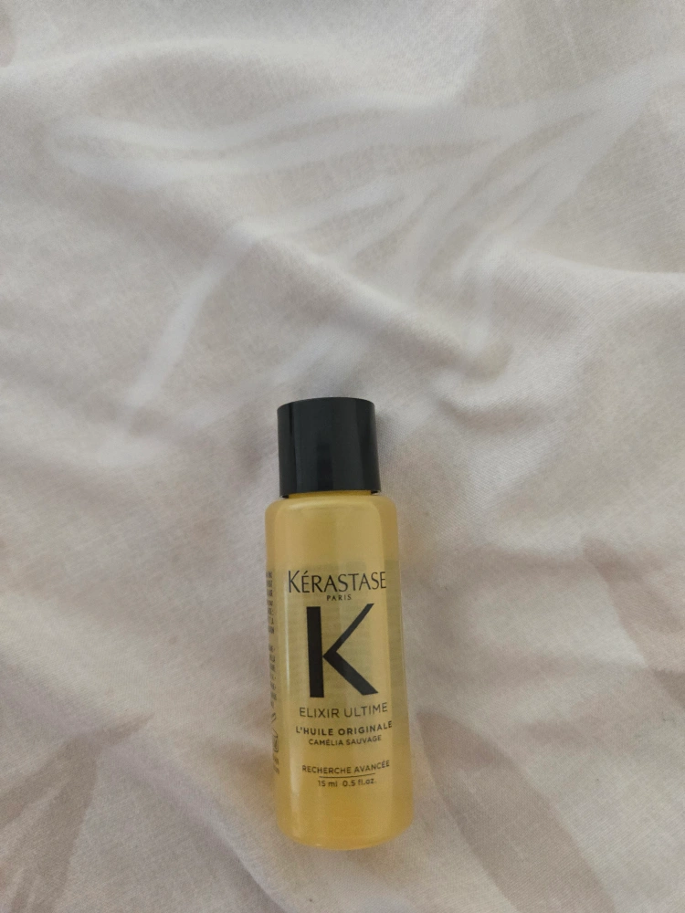 Selling a small bottle of Kérastase Elixir Ultime hair oil. It's the L'Huile Originale with camelia sauvage, in a 15ml size. Perfect for trying out this popular hair product!