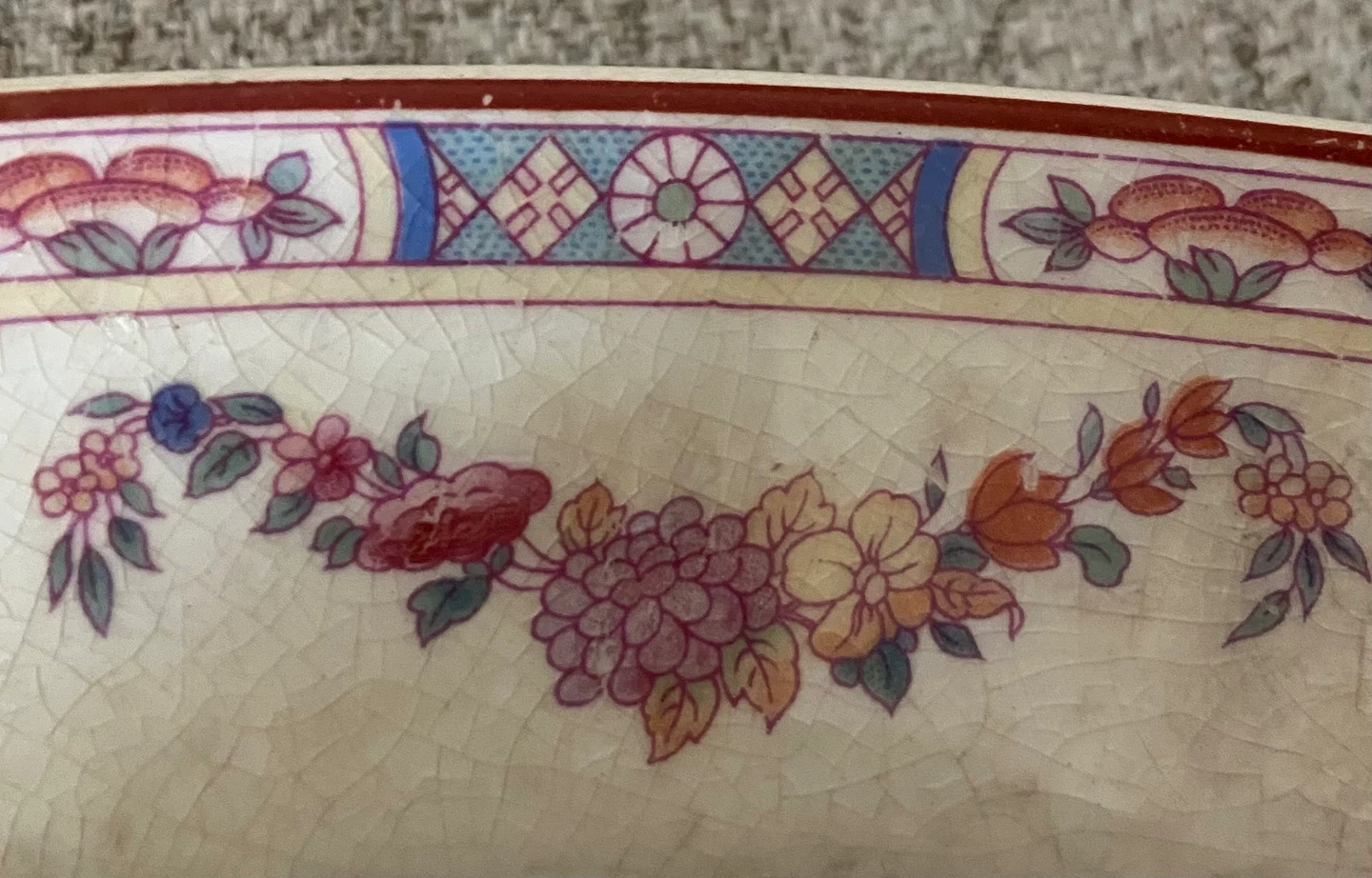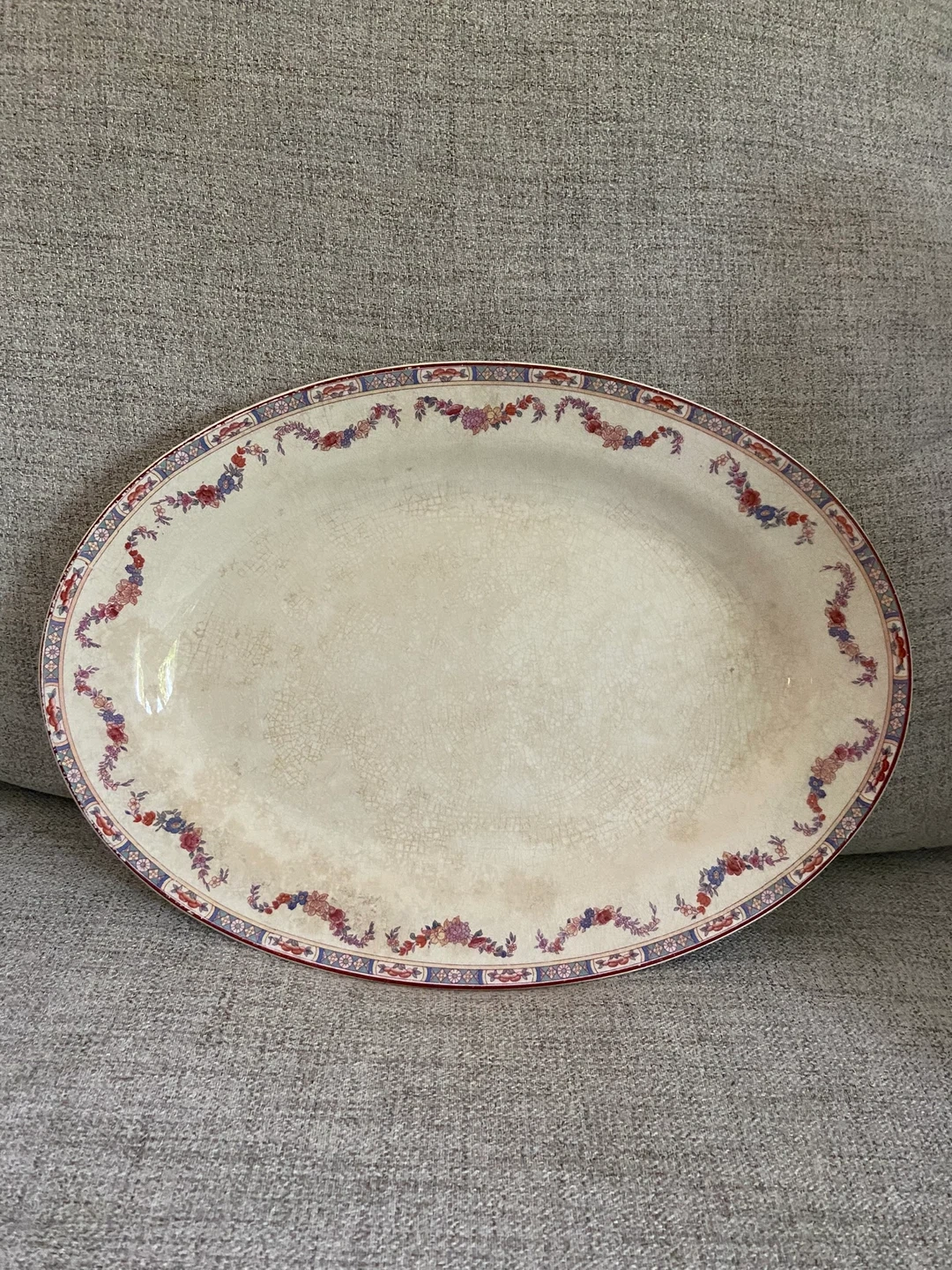 10Selling a vintage K.T.&K China P.D.B. oval platter. It features a floral design around the rim. Perfect for serving or display! No chips