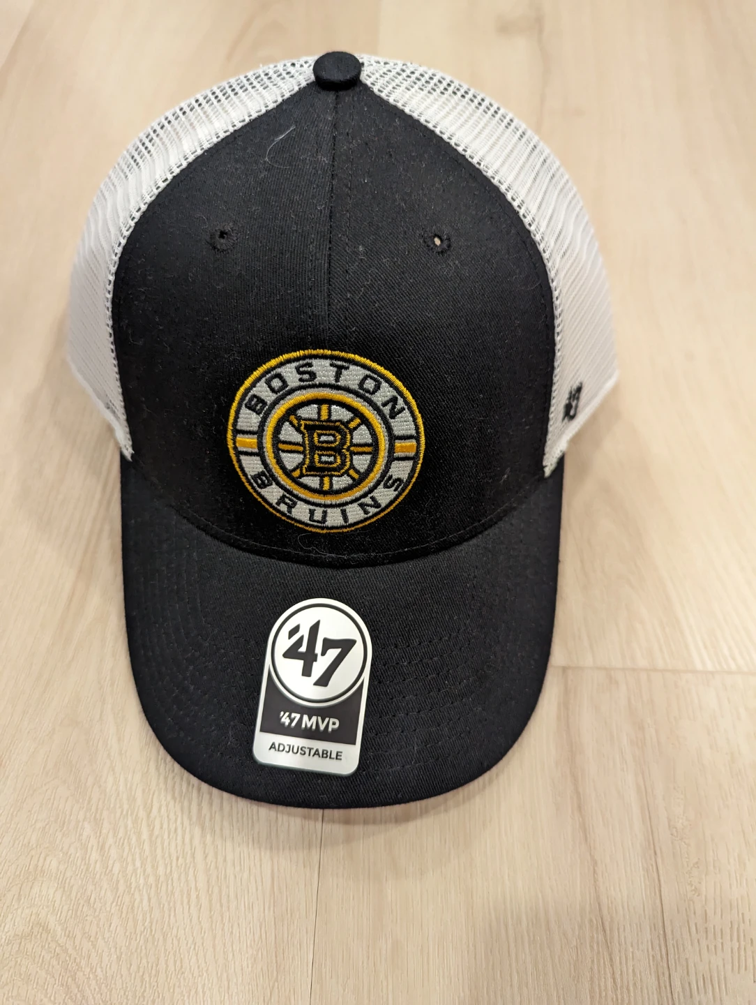 Selling a Boston Bruins '47 MVP adjustable cap. It's in great condition and ready for a new fan! The cap features the Bruins logo and an adjustable strap for a comfortable fit