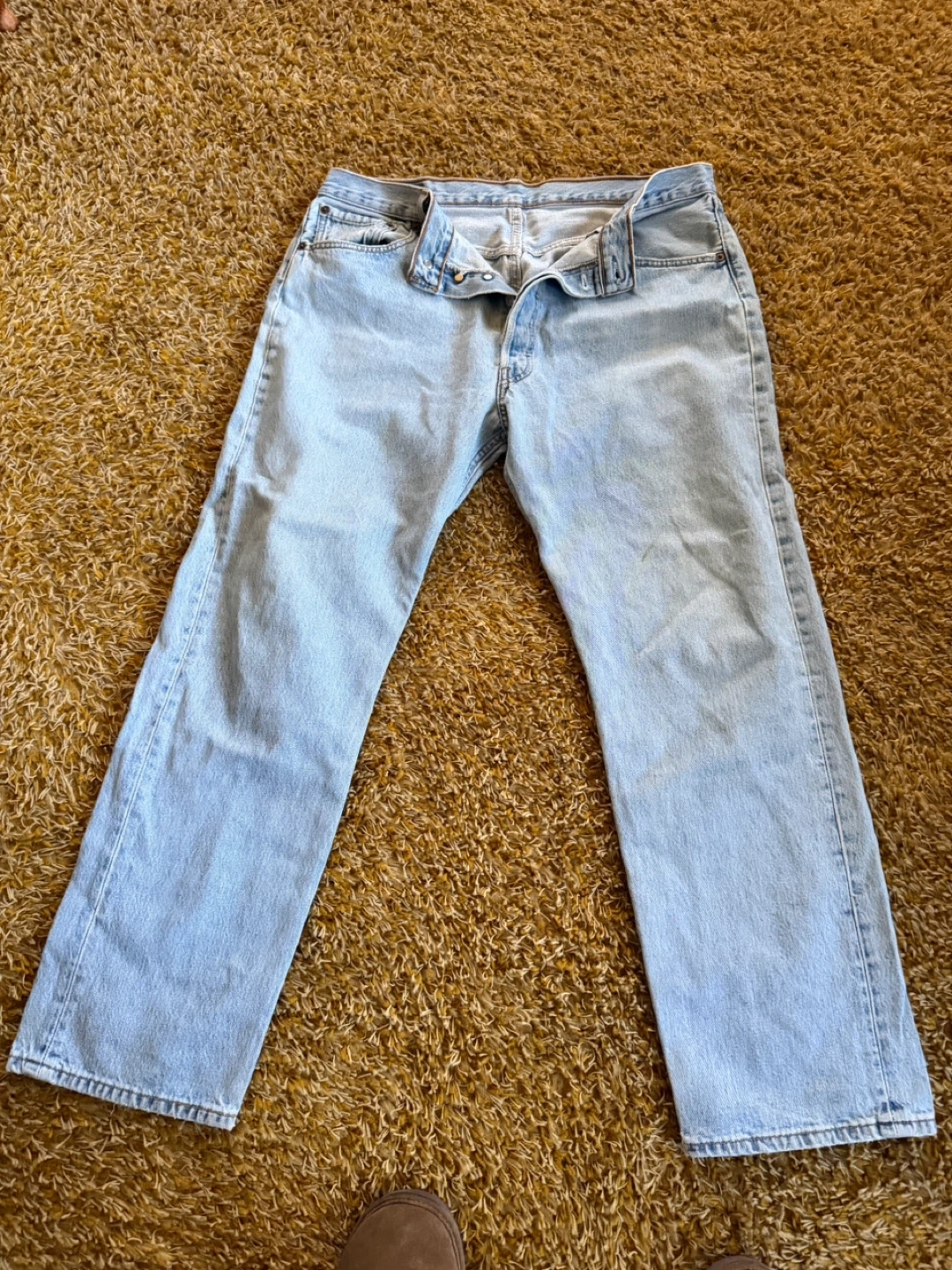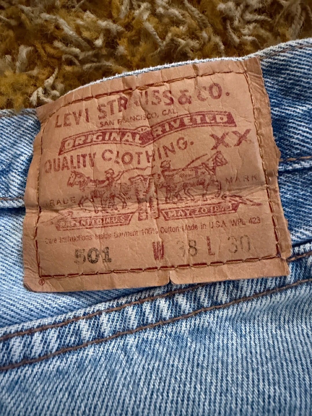 Buy & SellLevi's 501 Jeans - Light Wash - W 38 L 30Levi's 501 Jeans - Light Wash - W 38 L 30$45cotton denim. Made in USA. These jeans are size 38 waist and 30 length.ConditionGoodSize38/30BrandLevi 501WHERE TO MEETSperling and Canada wayView MapSELLERverifiedLjMoney Buckingham761 review0 chats·1 favorites·27 viewsSEND CHAT TO SELLERHi Lj! I’m interested in your listing.Hi Lj! I’m interested in your listing.Get the Karrot app to chatSign In to chat