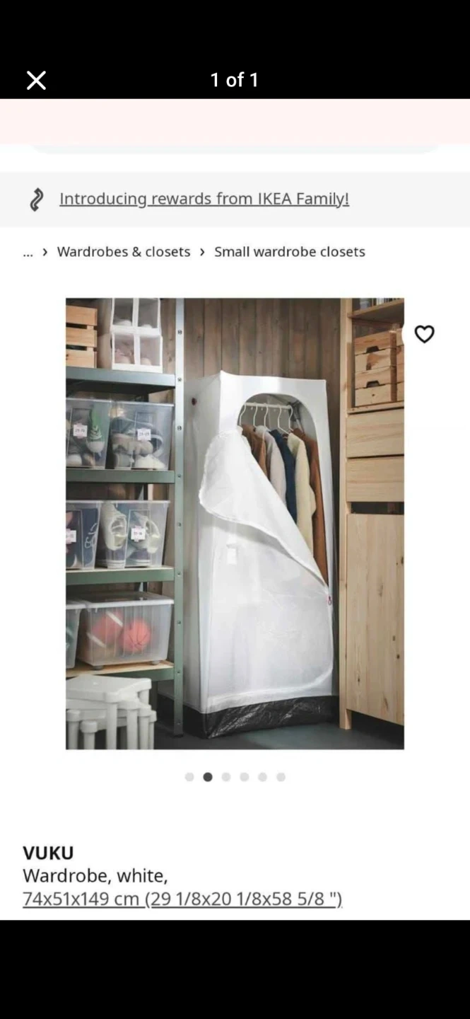 Selling an IKEA VUKU wardrobe in white! It's a great, compact solution for extra storage. The dimensions are 74x51x149 cm (approximately 29 1/8x20 1/8x58 5/8 inches)