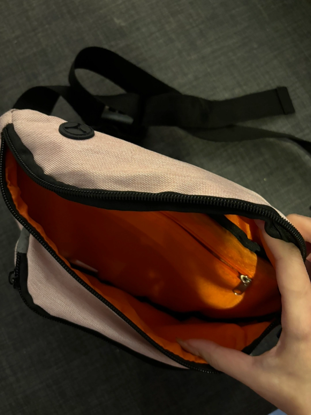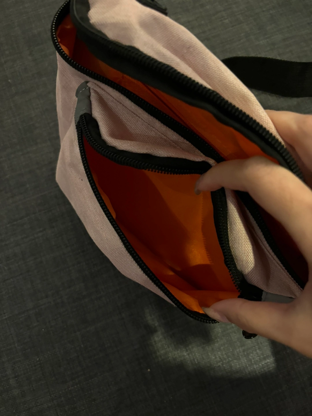 Light pink adjustable Fanny Pack. Used a few times but is clean and pretty new. Perfect for travel and storing essentials. No longer need as I purchased a new fanny pack.