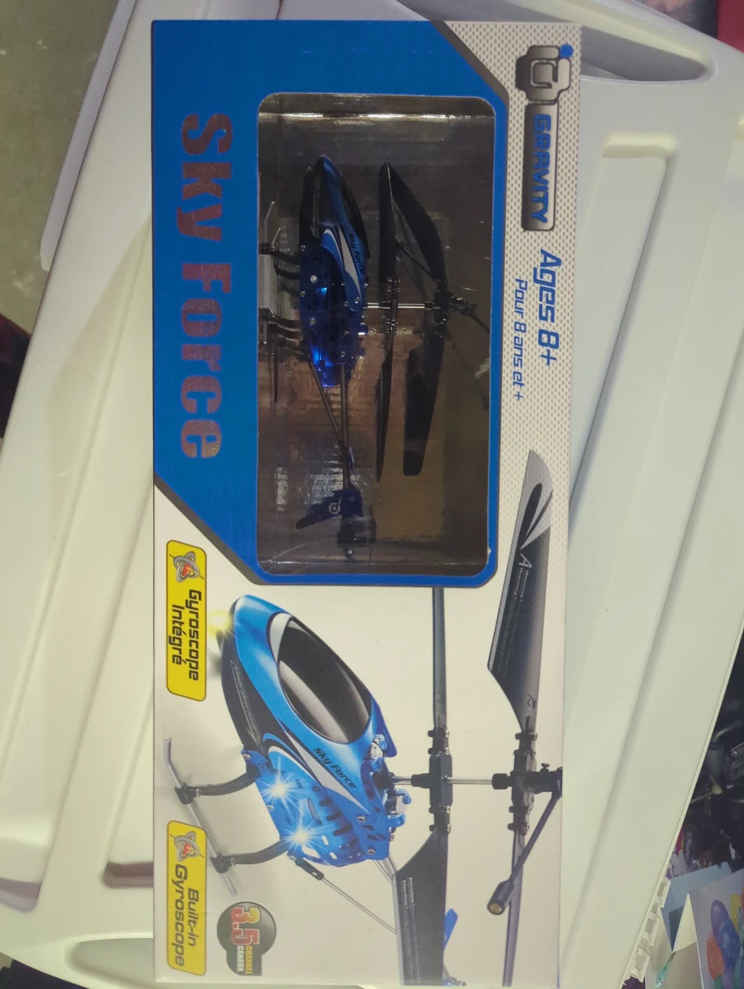 Selling a Sky Force helicopter by Gravity! It's suitable for ages 8 and up. It features a built-in gyroscope for stable flight, and it's a 3.5 channel helicopter... perfect for Christmas... fastest pickup