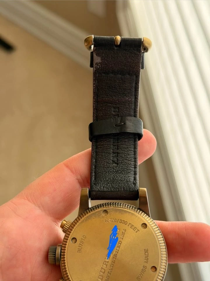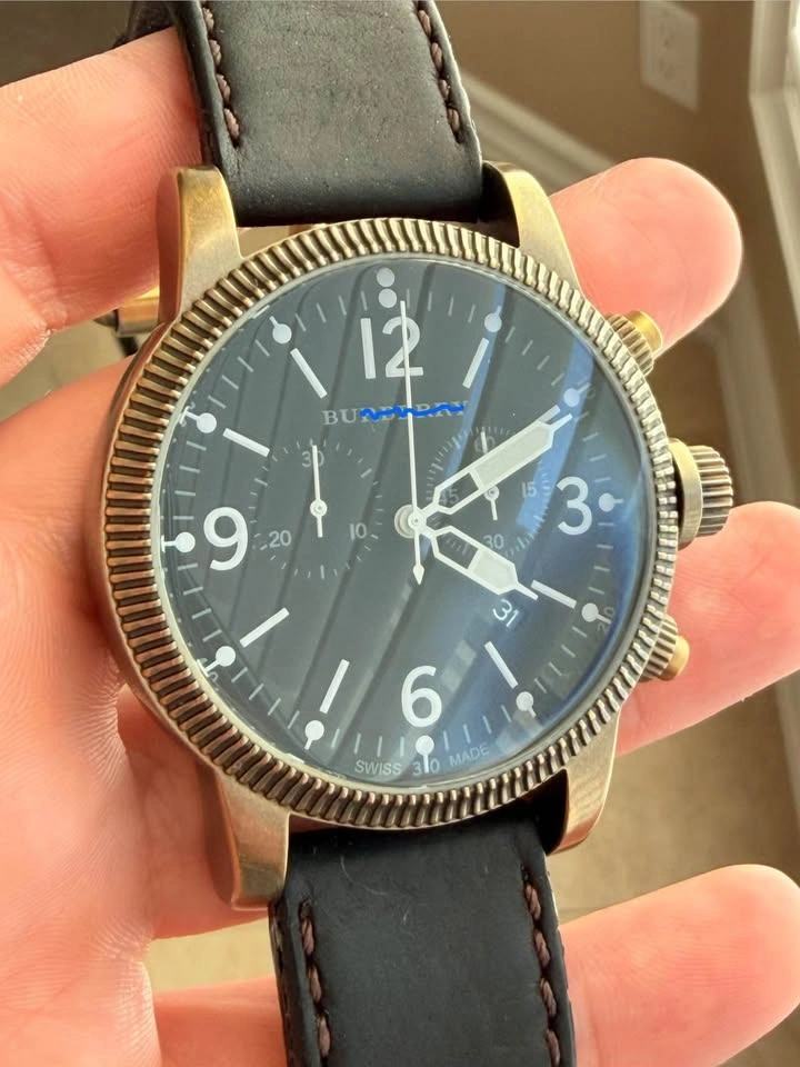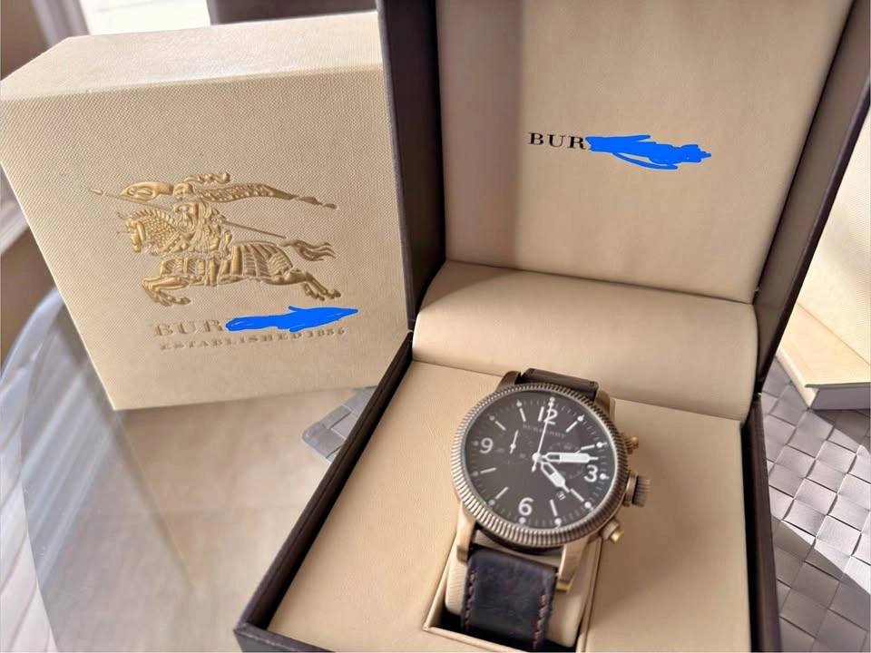 Watch in excellent condition. Comes with a complete set: inner box, outer box, manual, and warranty card. Features original authentic branded Barb-berry soft leather strap and Barb-berry buckle.