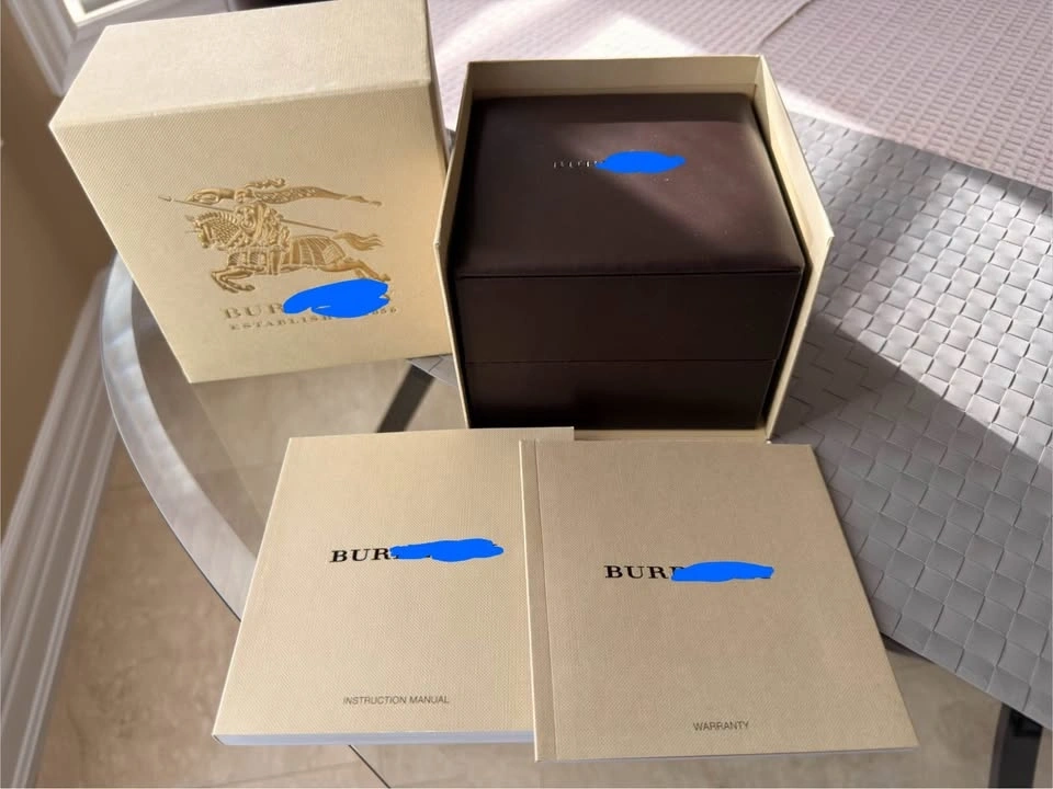 Watch in excellent condition. Comes with a complete set: inner box, outer box, manual, and warranty card. Features original authentic branded Barb-berry soft leather strap and Barb-berry buckle.