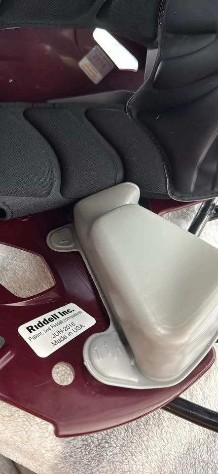 Features an ABS shell with ventilation, similar to the "Revolution Speed" pro model, to help keep players cool. Includes patented Side Impact Protection (PSIP) with an interior liner extending to the jaw to better absorb lateral impacts. It's very lightweight (approx. 1 kg without facemask), making it easier for children to maintain proper neck and head posture. Compatible with Riddell Speed (S-Bar) series facemasks.