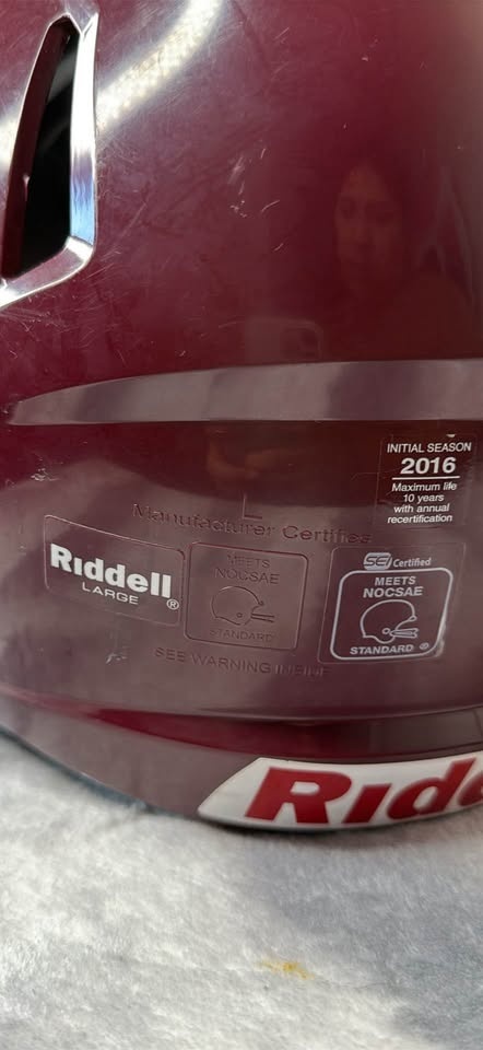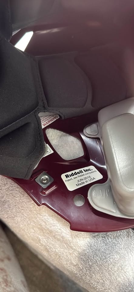 Features an ABS shell with ventilation, similar to the "Revolution Speed" pro model, to help keep players cool. Includes patented Side Impact Protection (PSIP) with an interior liner extending to the jaw to better absorb lateral impacts. It's very lightweight (approx. 1 kg without facemask), making it easier for children to maintain proper neck and head posture. Compatible with Riddell Speed (S-Bar) series facemasks.