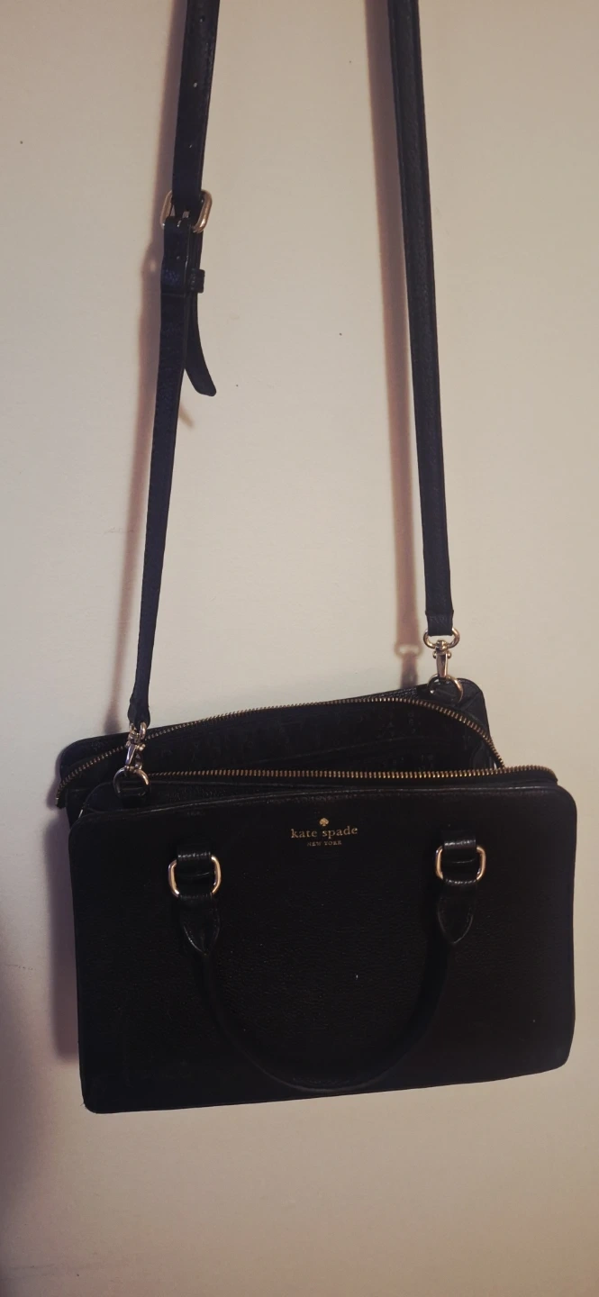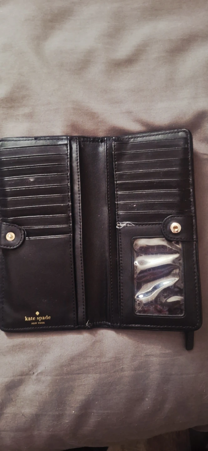 I'm selling a Kate Spade wallet and purse! Both are in great condition and made of black leather. The wallet is a convenient size for everyday use, and the purse is perfect for carrying your essentials in style