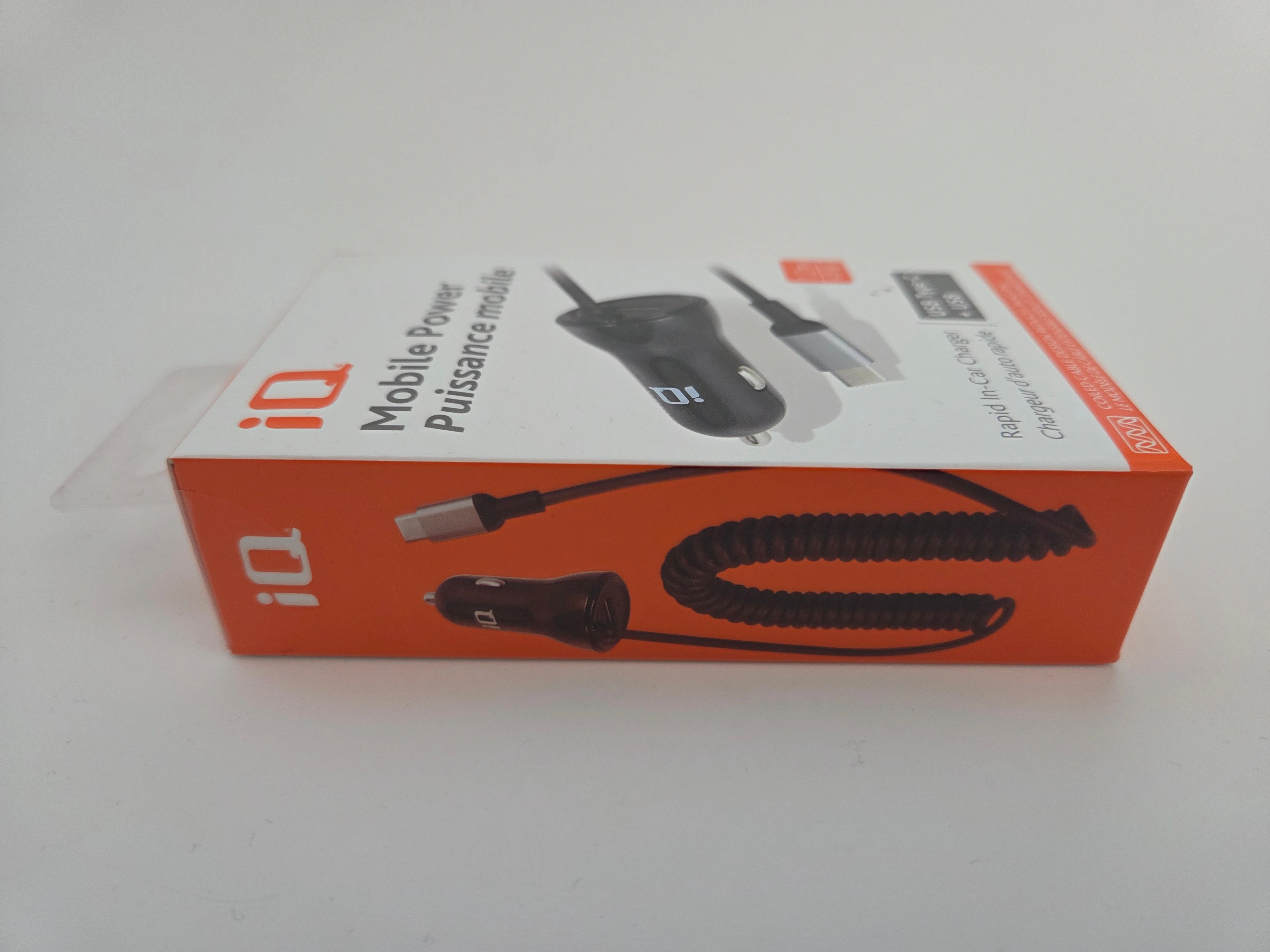 Brand new iQ Mobile Power rapid in-car charger with built-in coiled USB-C cable and an extra USB-A port.