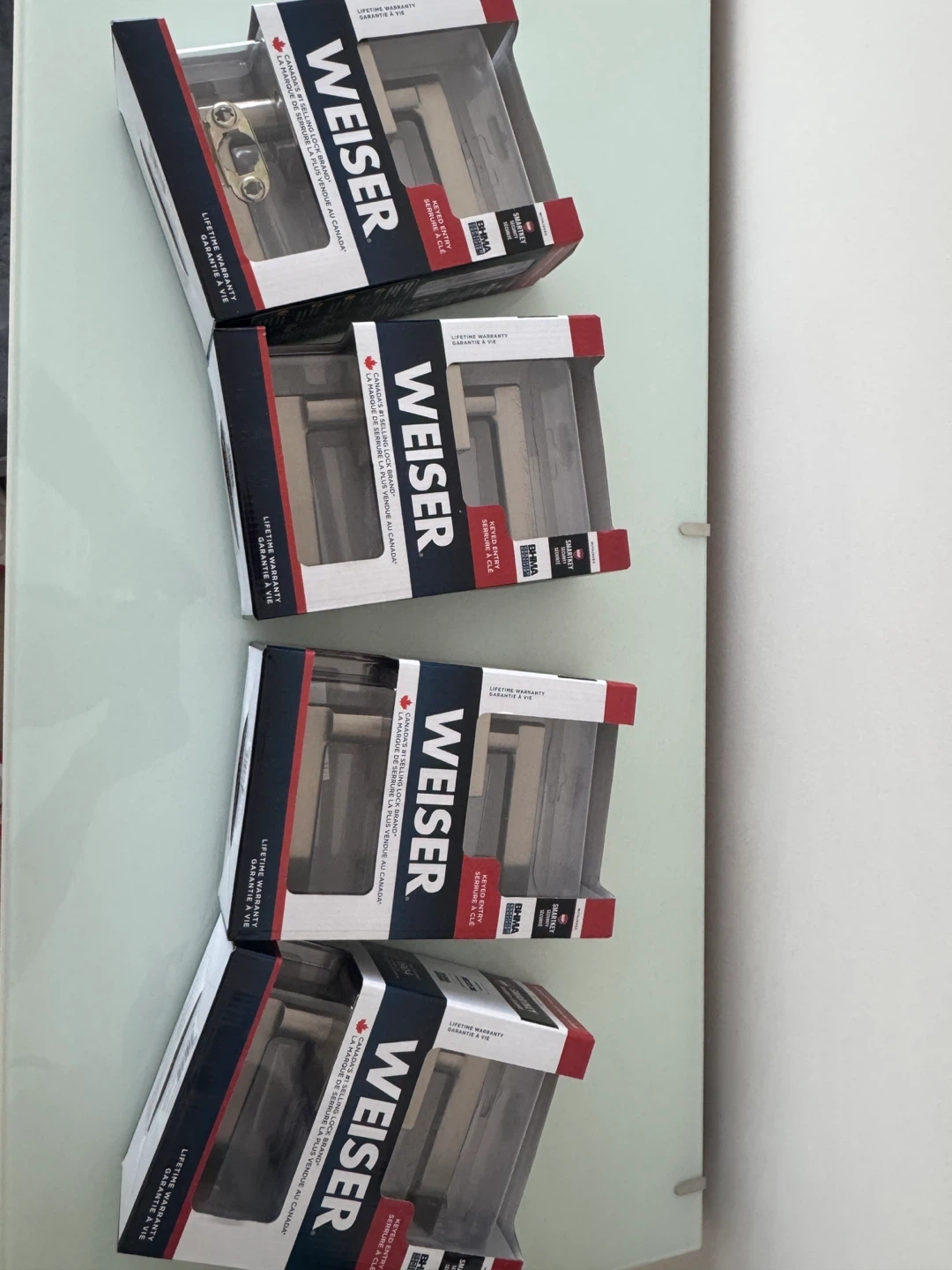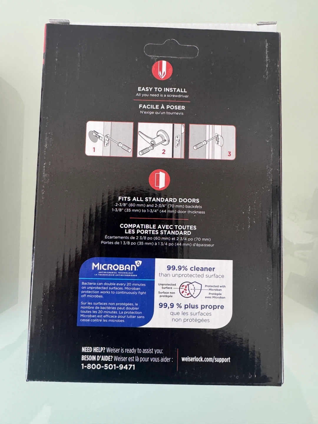 New Weiser no key entry door handle set. Fits all standard doors and compatible with standard backsets. Features Microban antimicrobial protection for 99.9% cleaner surfaces. Includes a lifetime warranty.