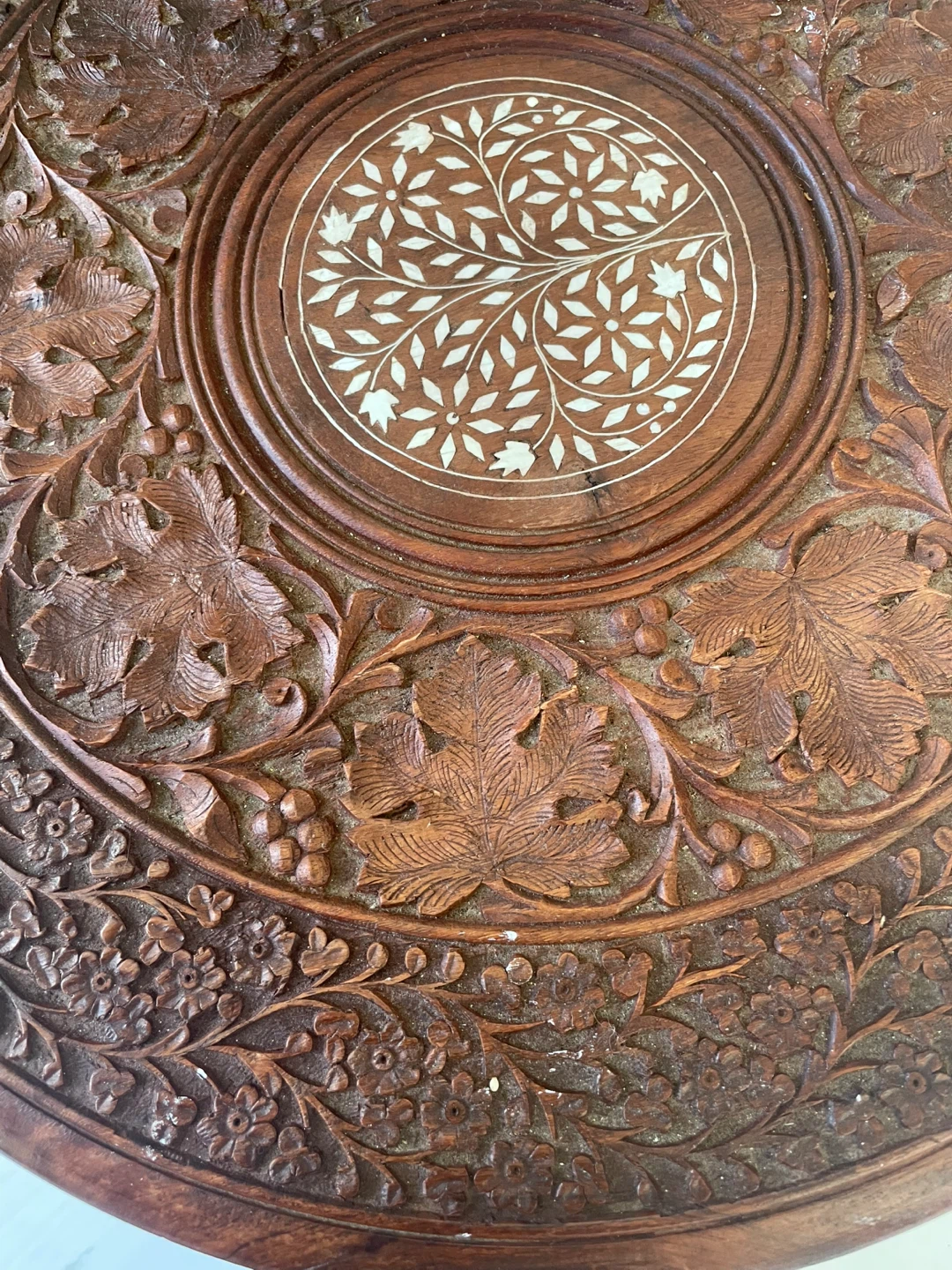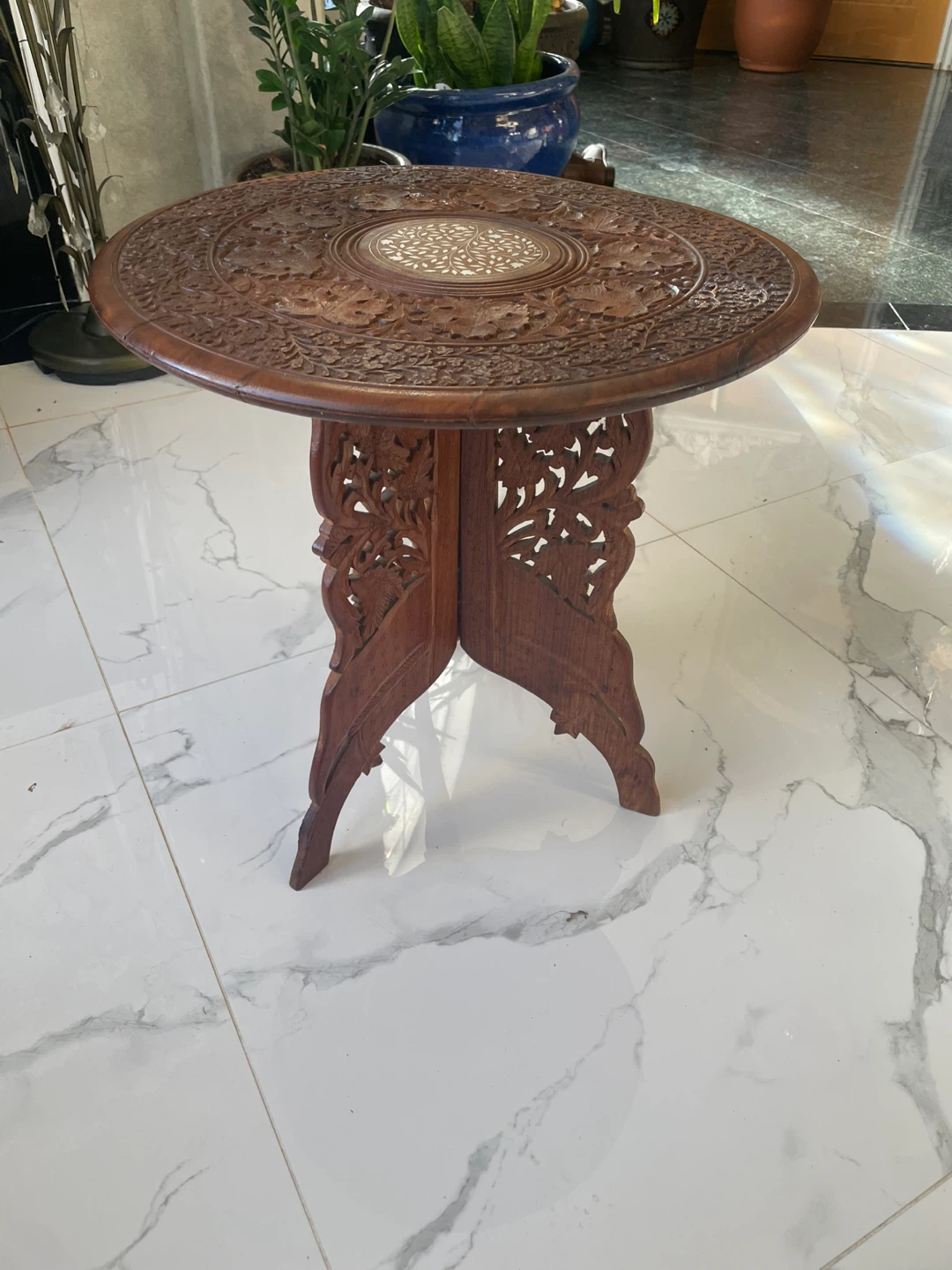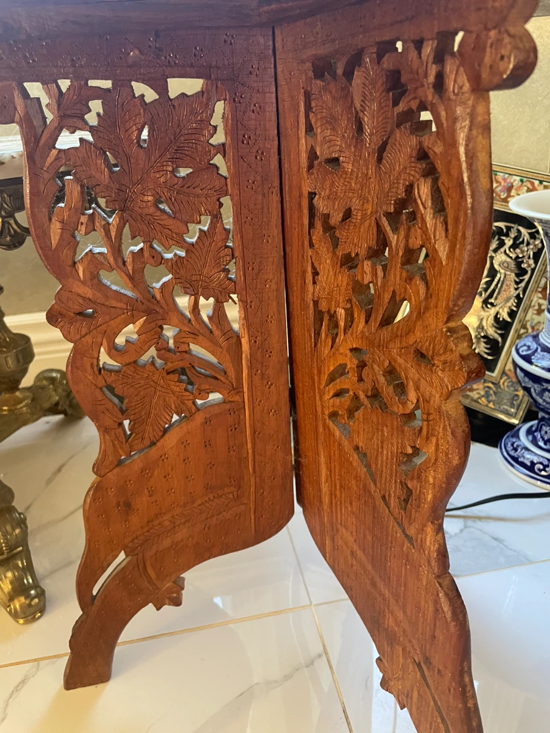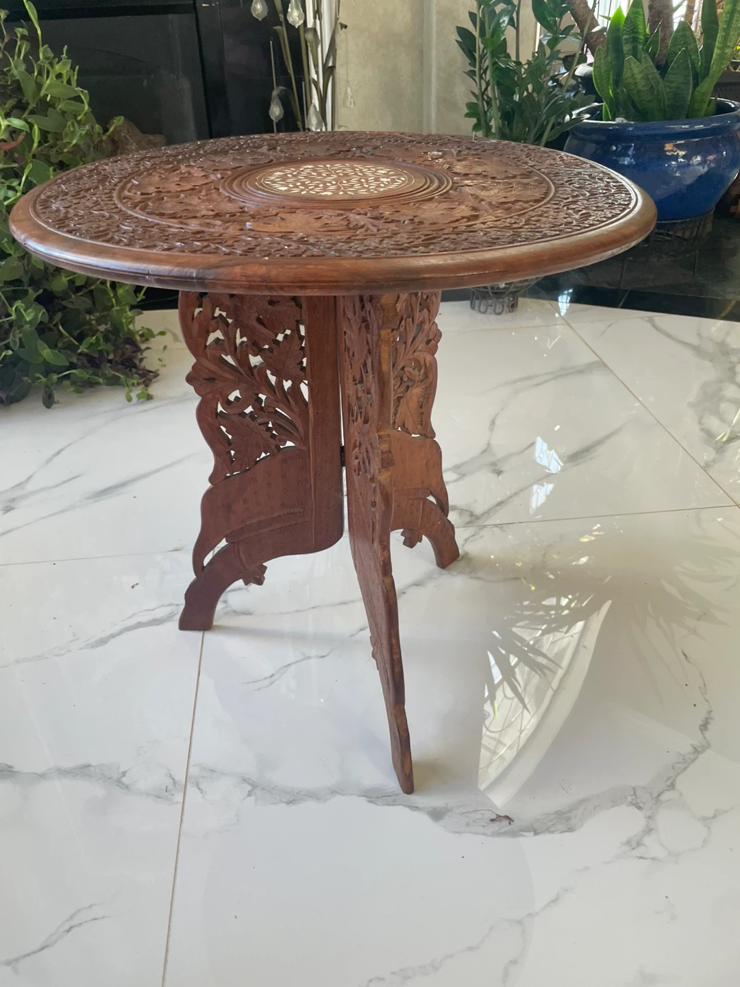 Beautifully carved wood accent table. It's in great shape and would add a unique touch to any room