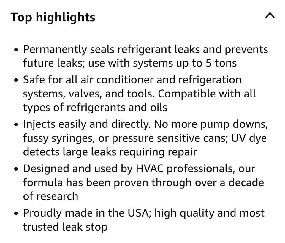 Buy & SellBrand new set of 3 Leak Savers refrigerant sealant for HVACBrand new set of 3 Leak Savers refrigerant sealant for HVAC$150Brand new. $150 per pack of 3. I have two packs of 3 available. Final sale. No exchange, no returns.WHERE TO MEETCheck LocationView MapSELLERverifiedMiss AFiddlesticks750 reviews0 chats·0 favorites·1 viewsSEND CHAT TO SELLERHi Miss A! I’m interested in your listing.Hi Miss A! I’m interested in your listing.Get the Karrot app to chatSign In to chat