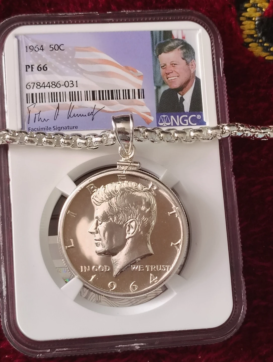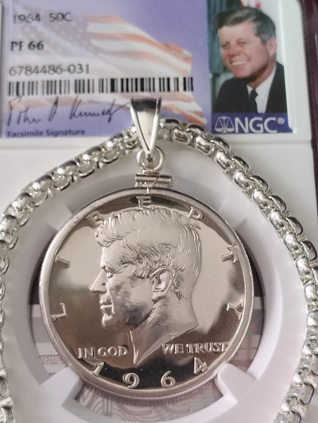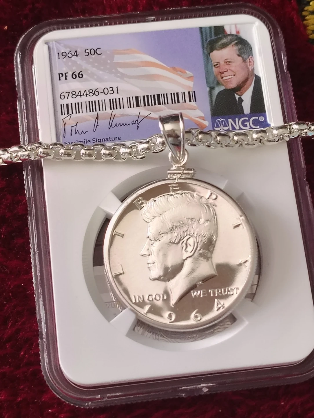 1964 Kennedy Half Dollar PF 66 Coin Pendant with Chain