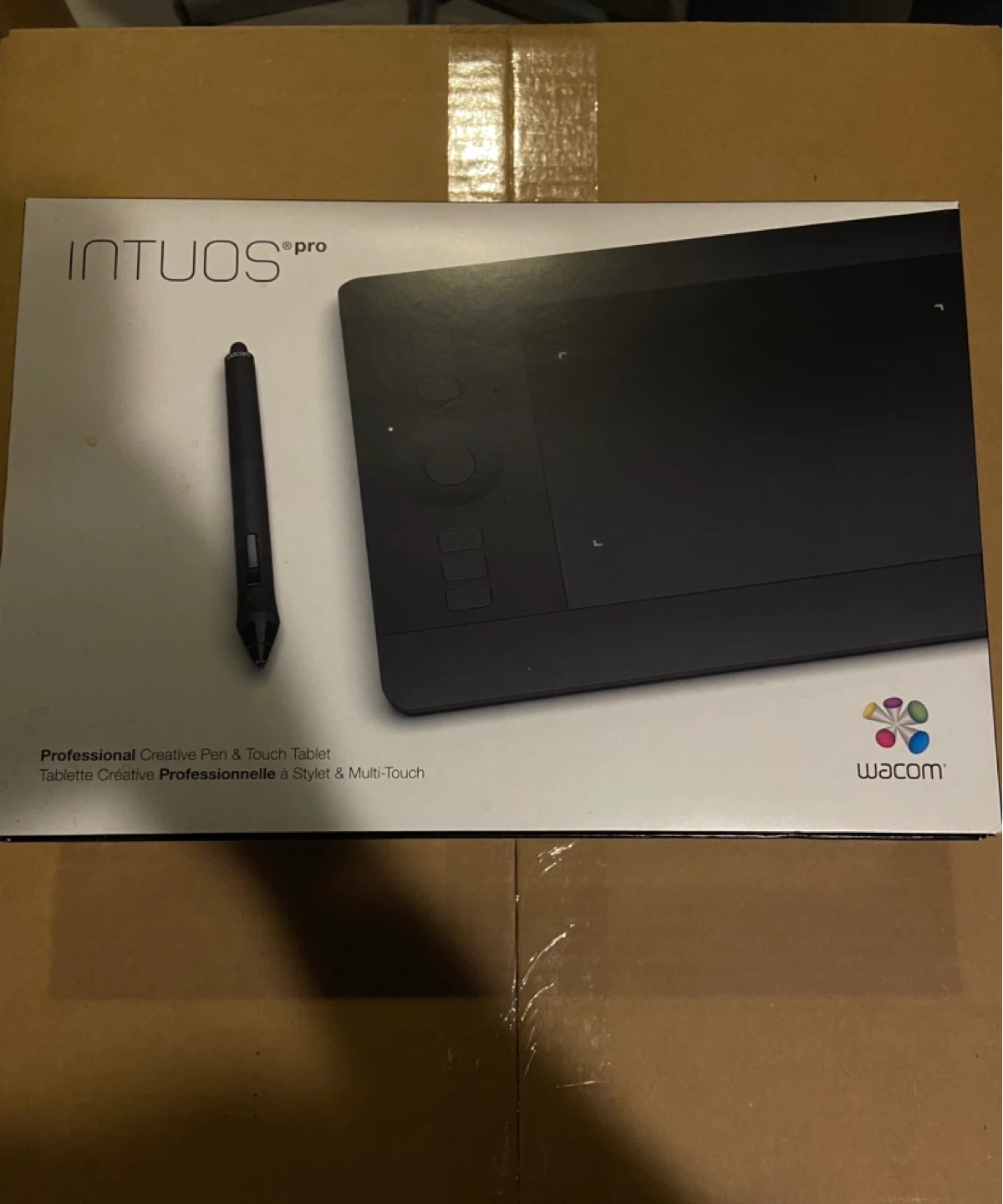 This Wacom Intuos Pro tablet is for creative professionals. It's a pen and touch tablet that comes with a stylus and accessories. Includes original box and packaging.