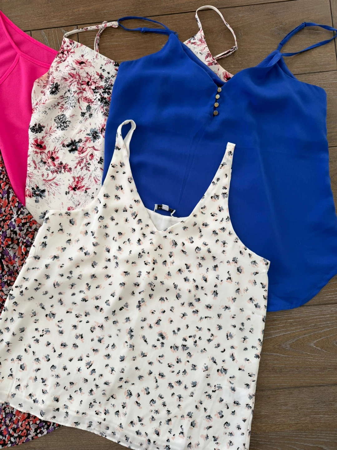 Two blue tops and white floral pink from Dynamite