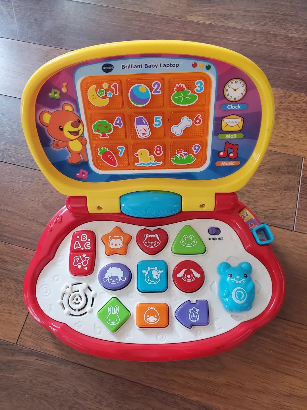 This VTech Brilliant Baby Laptop is a great interactive toy for little ones. It features multiple buttons with animal sounds, letters, and numbers. Plays music and lights up for engagement.