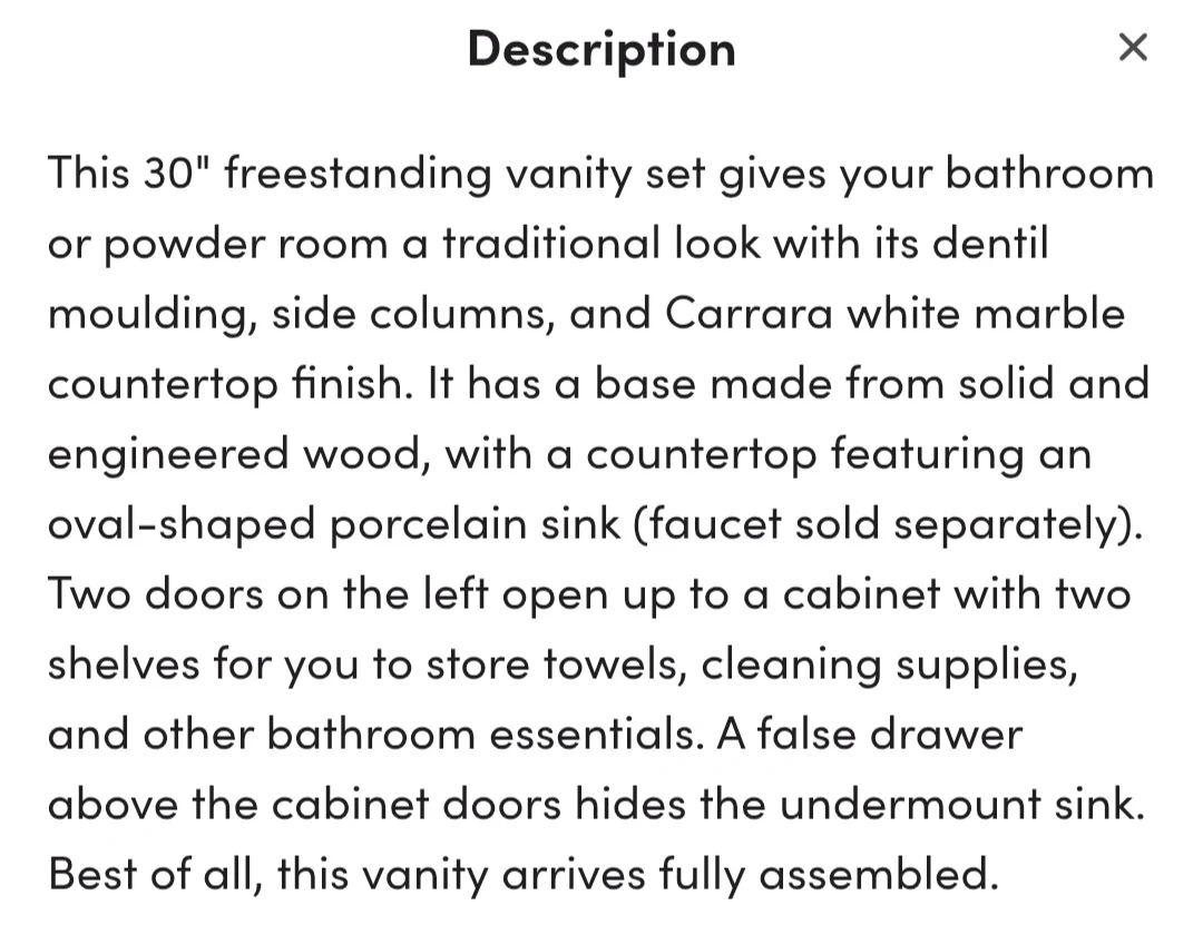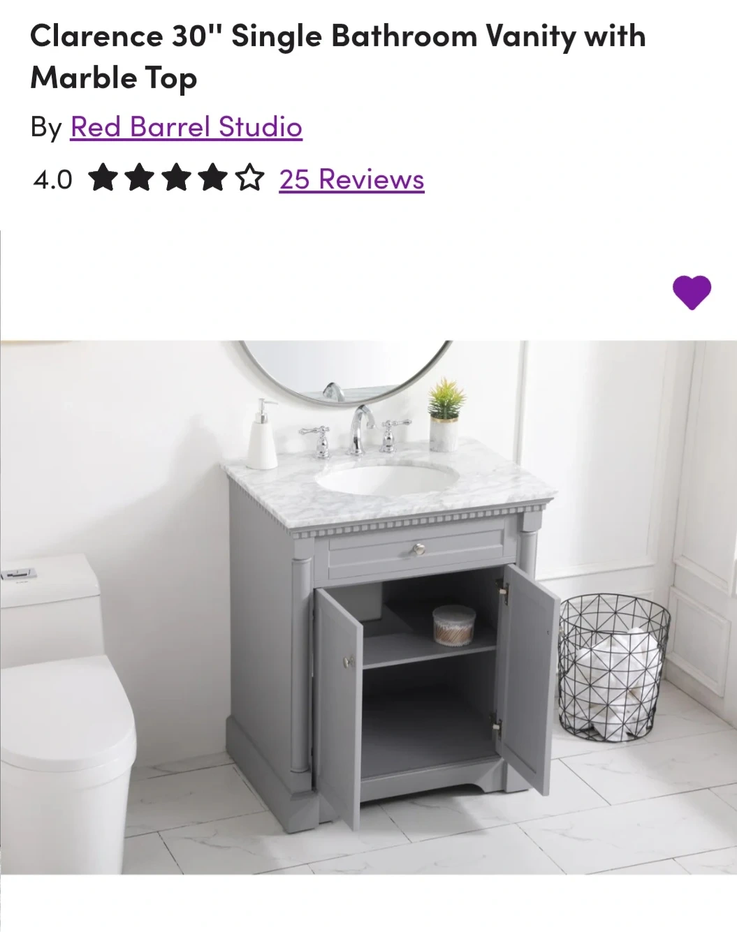 Selling a New, unused, in box, Red Barrel Studio 30" Single Bathroom Vanity with Marble Top!