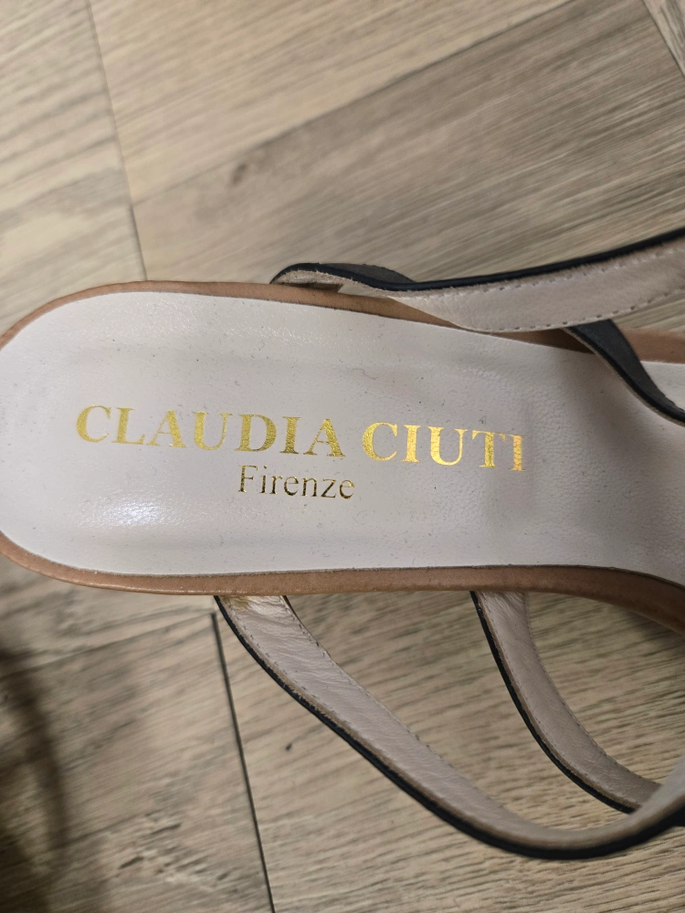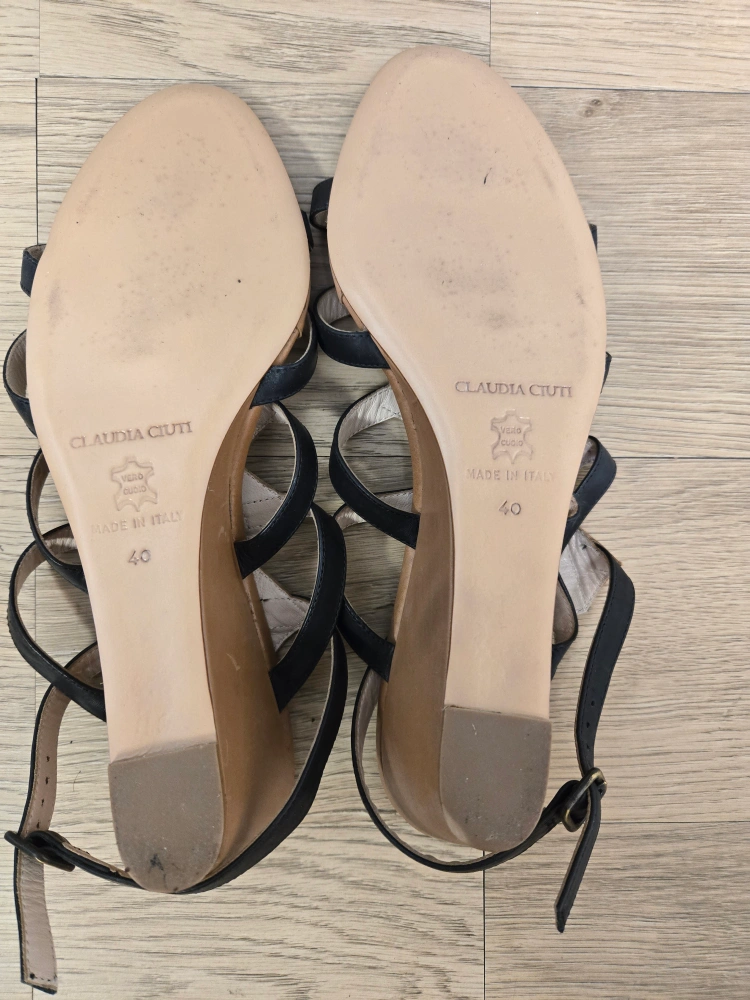 Selling a pair of Claudia Ciuti Firenze wedge sandals. They feature a unique black and tan design. The size is 40, made in Italy! They're in good condition and ready for a new home