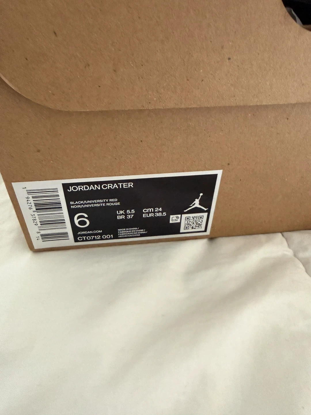 Jordan Crater shoes in black and university red. Size 6 UK (24 cm). Includes original box.