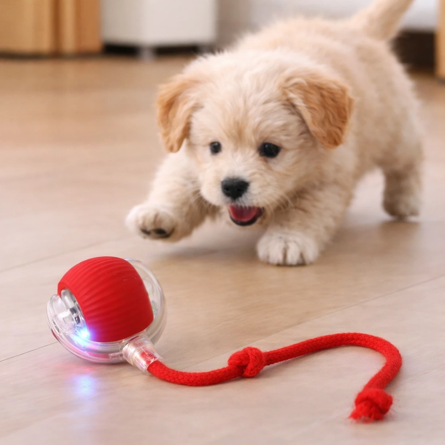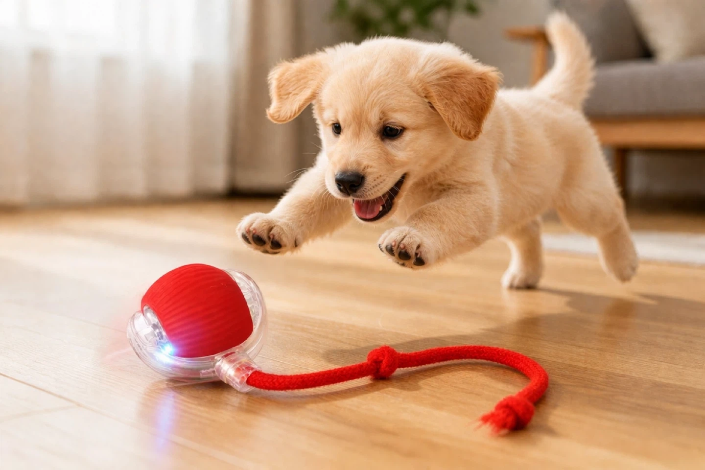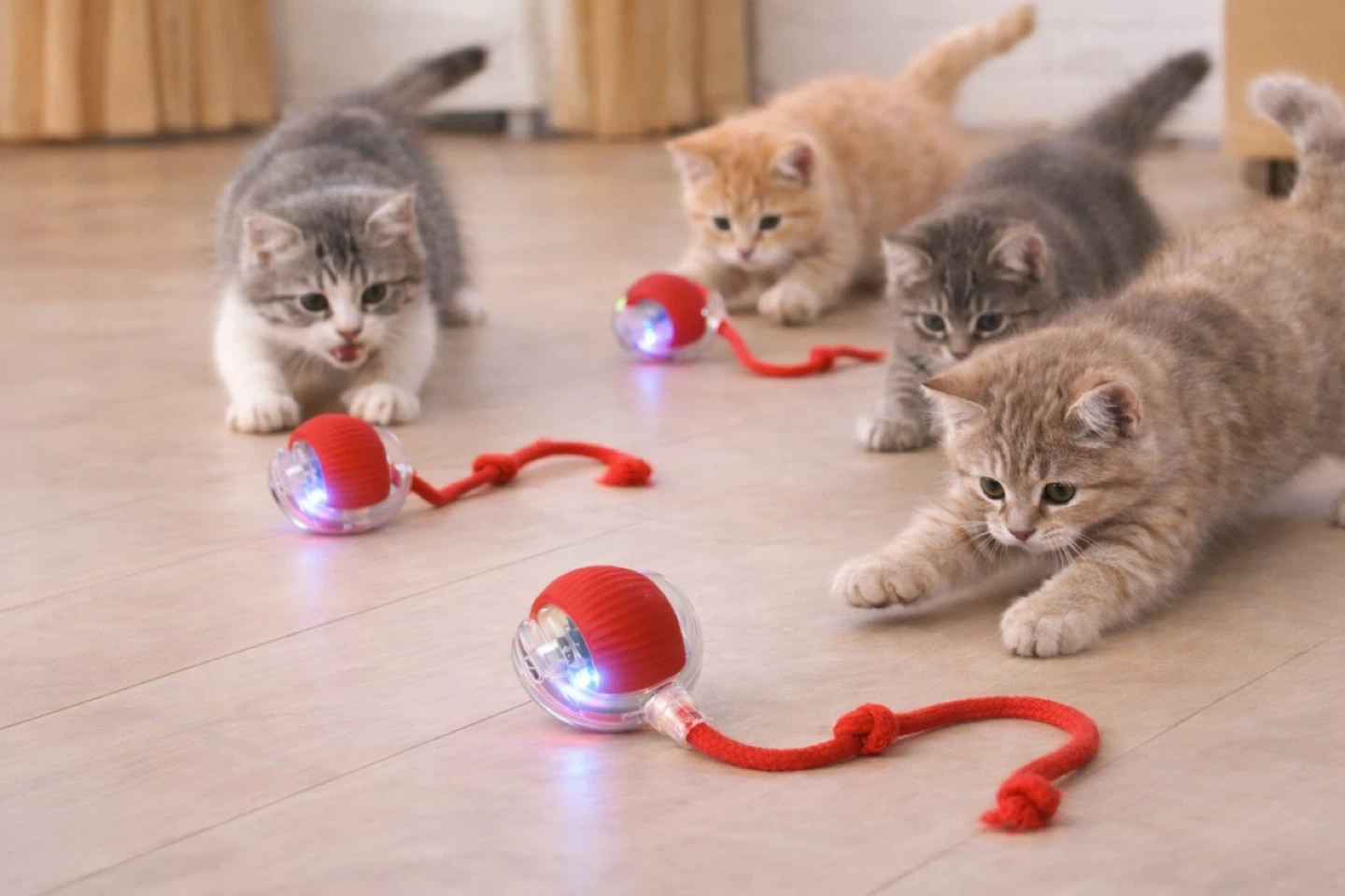 The toy automatically rolls and moves while the teaser tail encourages cats to chase, pounce, and play. It’s perfect for indoor cats that need extra exercise and stimulation.