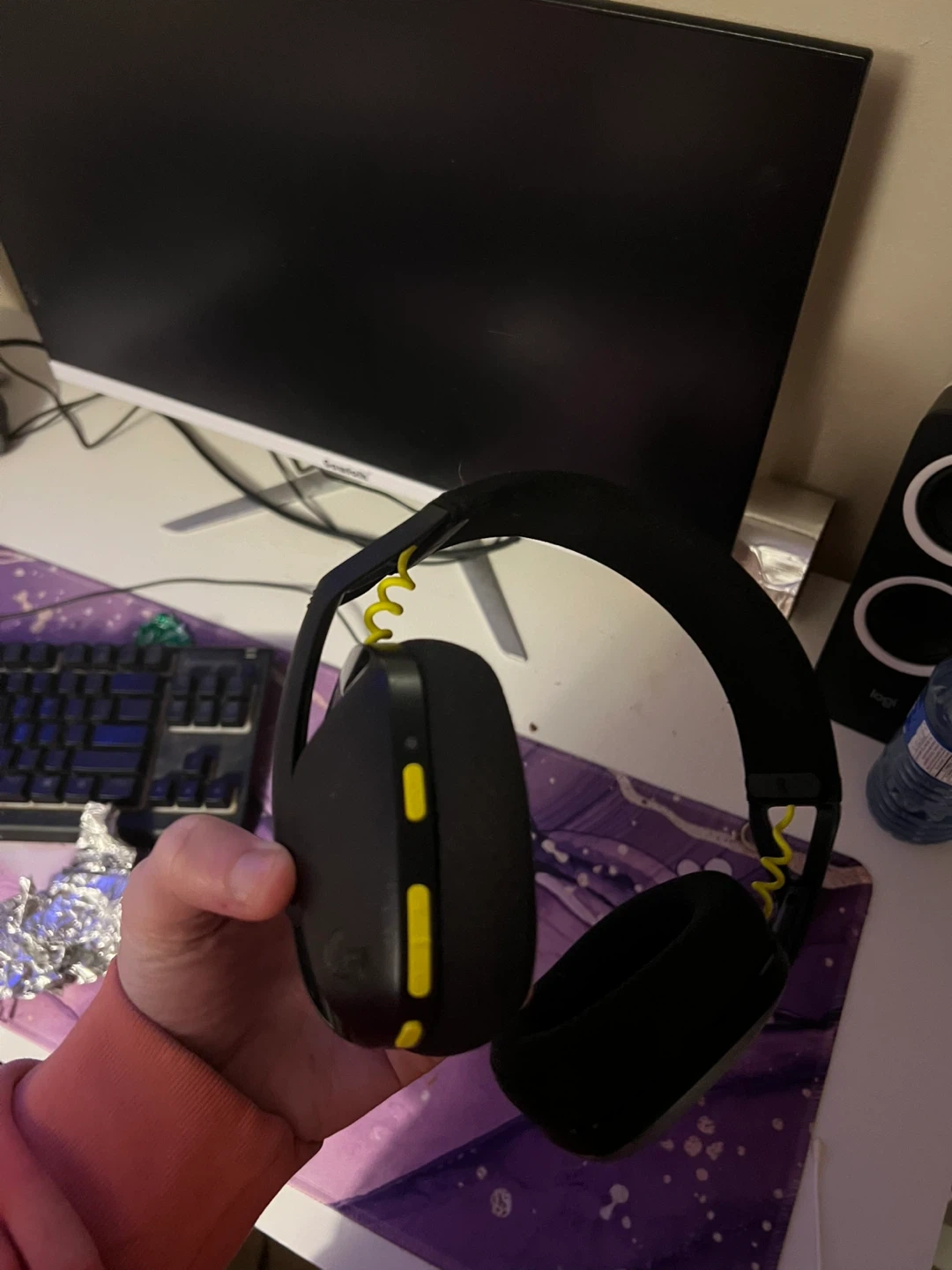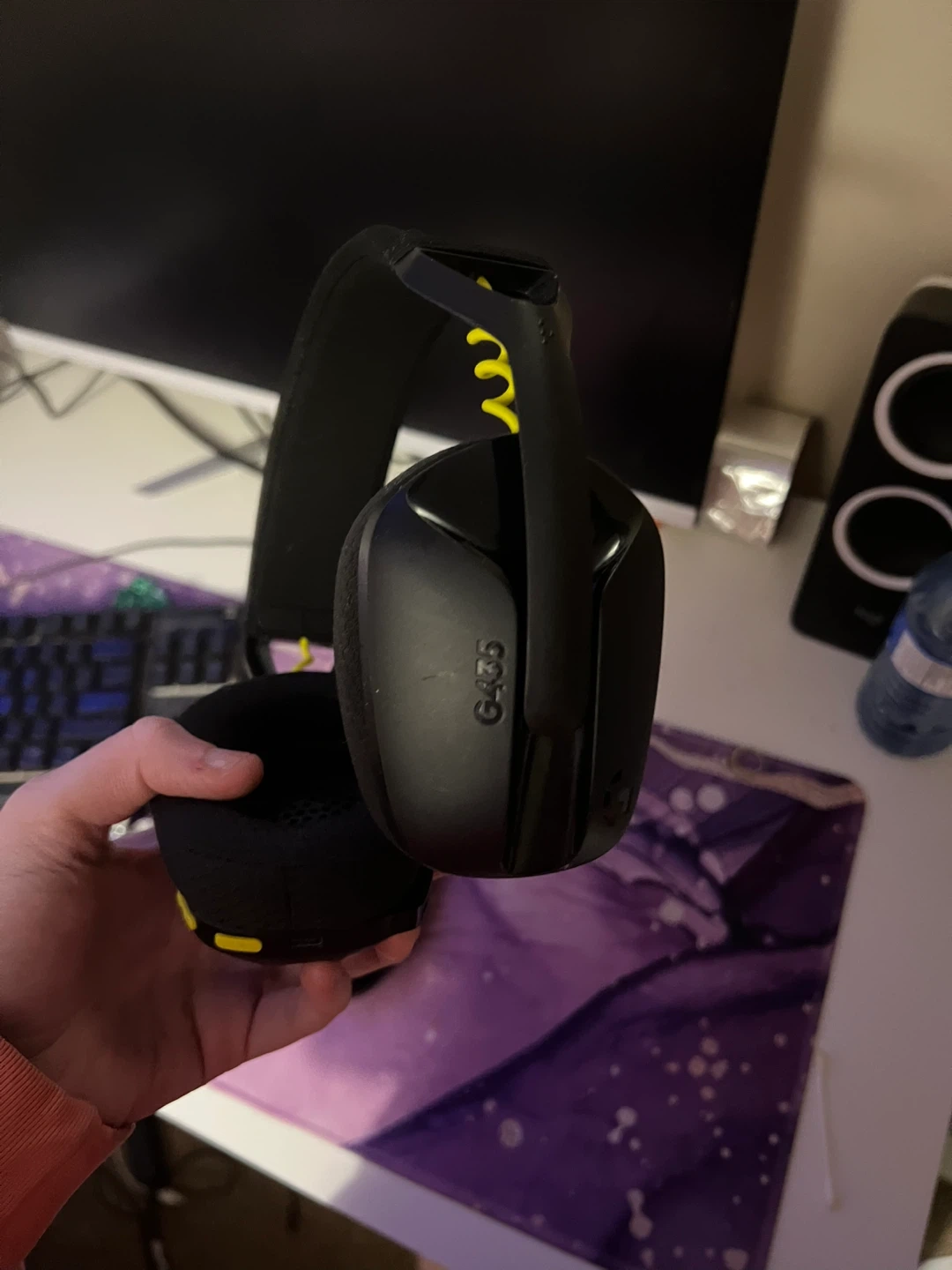 Selling a Logitech G435 headset in black and yellow. It's in great condition and ready for a new owner! Perfect for gaming or just listening to music