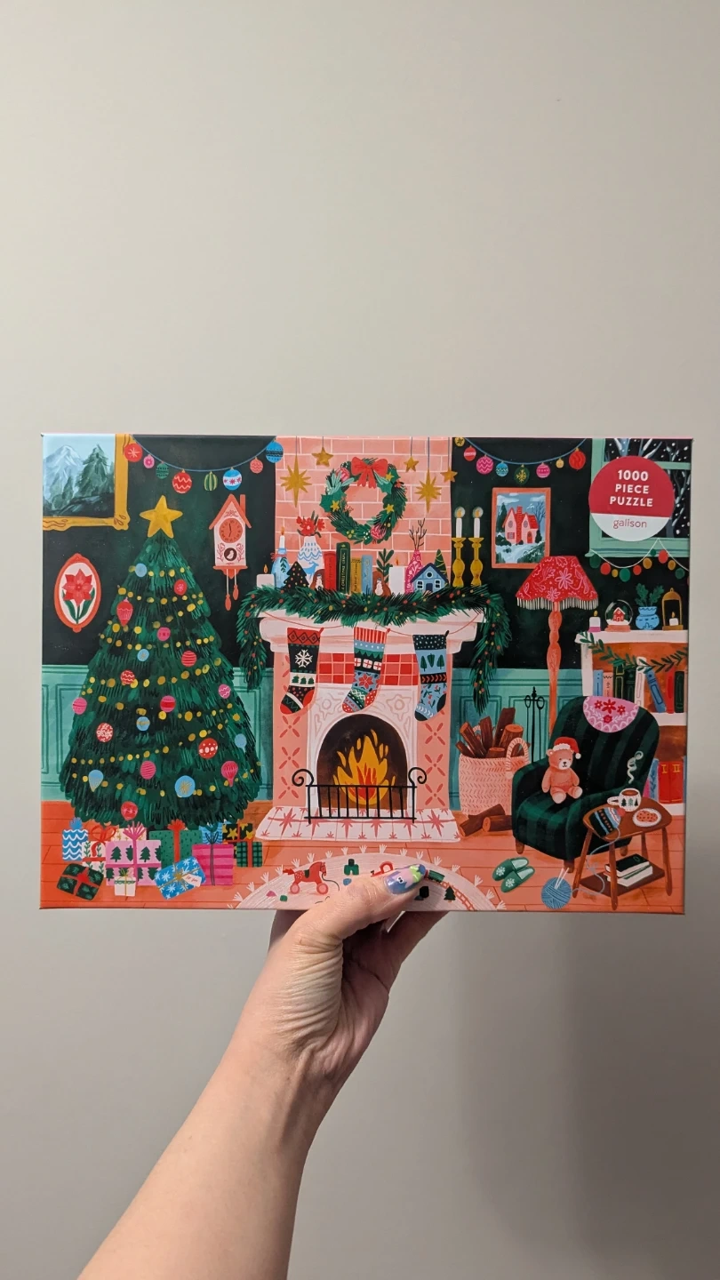 Cozy up with this Galison 1000 piece puzzle featuring a festive Christmas fireplace scene! It's the perfect activity for the holidays. The puzzle is complete and in great condition, ready for a new home.