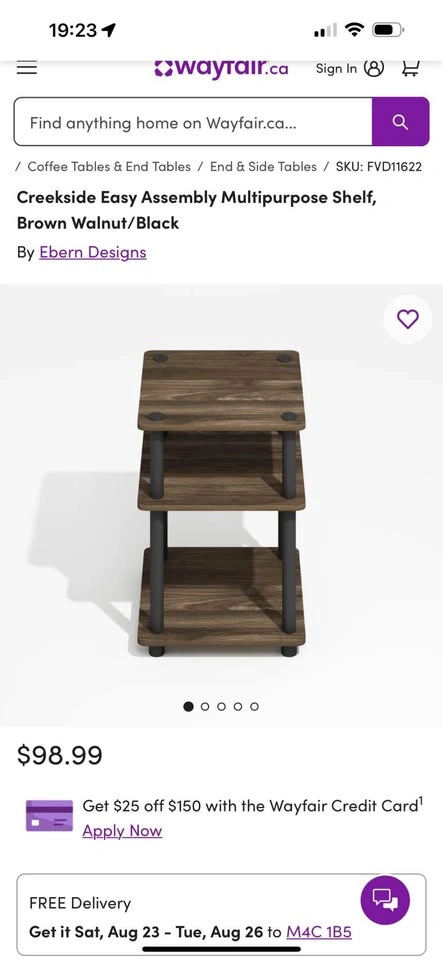Buy & SellWalnut brown side table/end tableWalnut brown side table/end table$30Walnut coloured end table. No damages.WHERE TO MEETCheck LocationView MapSELLERverifiedGracie SantosForest Hill N18412 reviews1 chats·1 favorites·49 viewsSEND CHAT TO SELLERHi Gracie Santos! I’m interested in your listing.Hi Gracie Santos! I’m interested in your listing.Get the Karrot app to chatSign In to chat