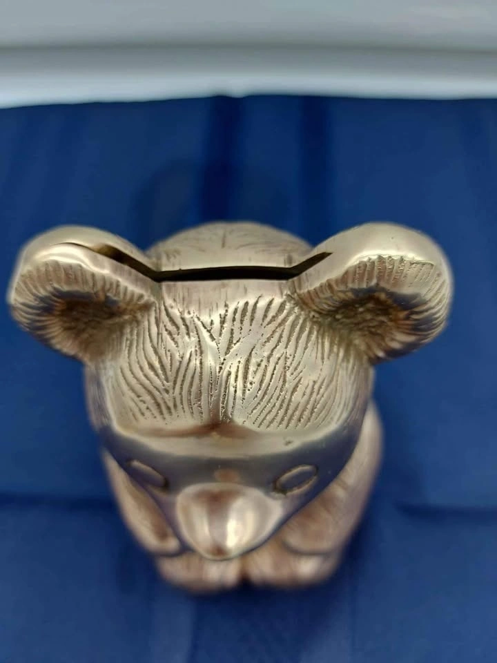 Vintage Brass Teddy Bear Piggy Bank