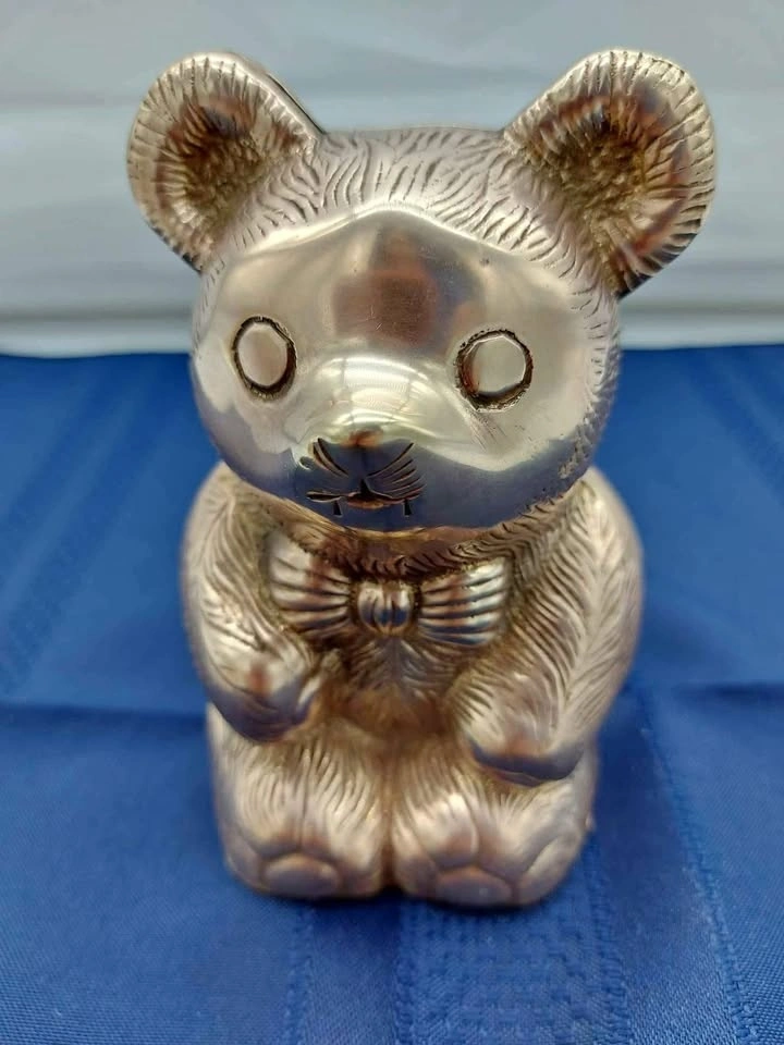 Vintage Brass Teddy Bear Piggy Bank