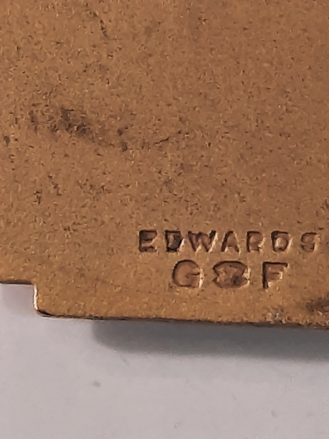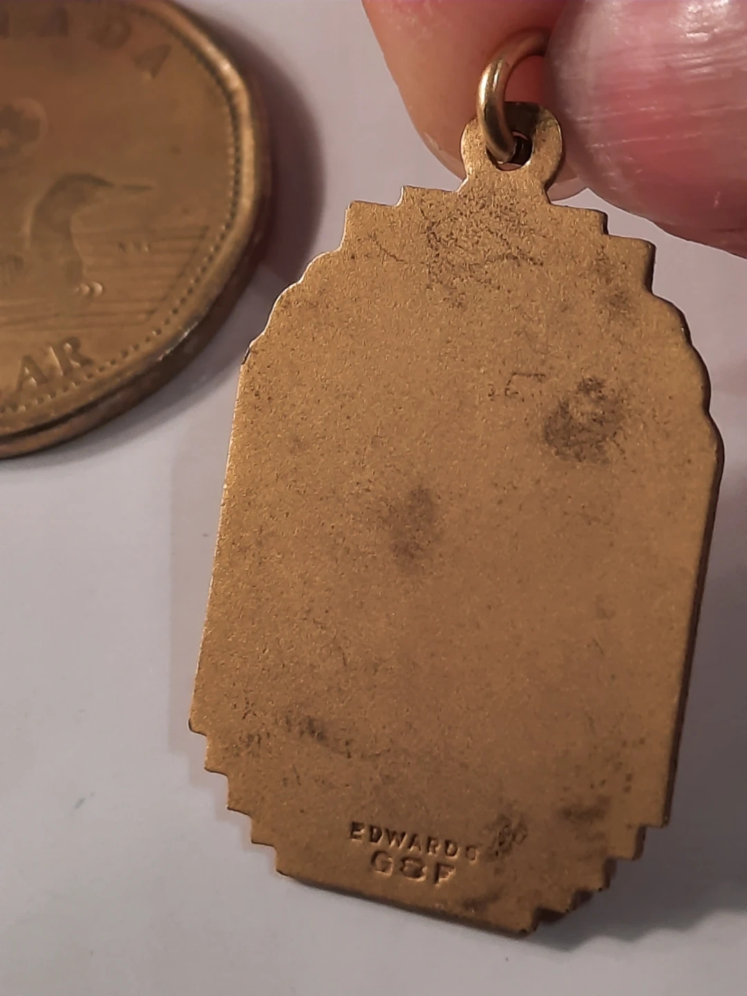 This vintage medal is for the Ontario OTS Junior Police Games. It's made of metal and features the Ontario crest and 'OTS' insignia. Engraved on the back are 'EDWARDS G&F'.gold filled.gold tone