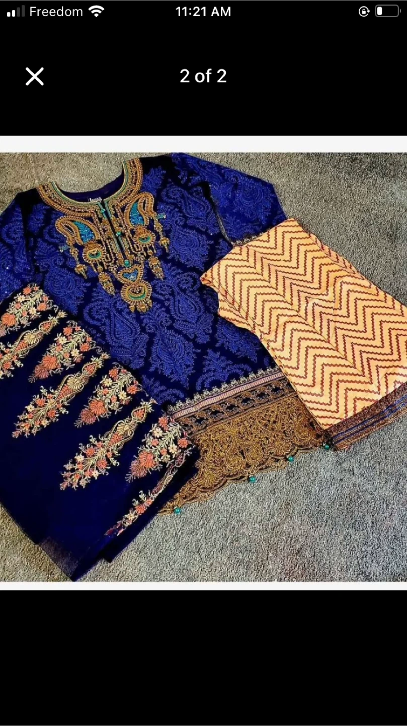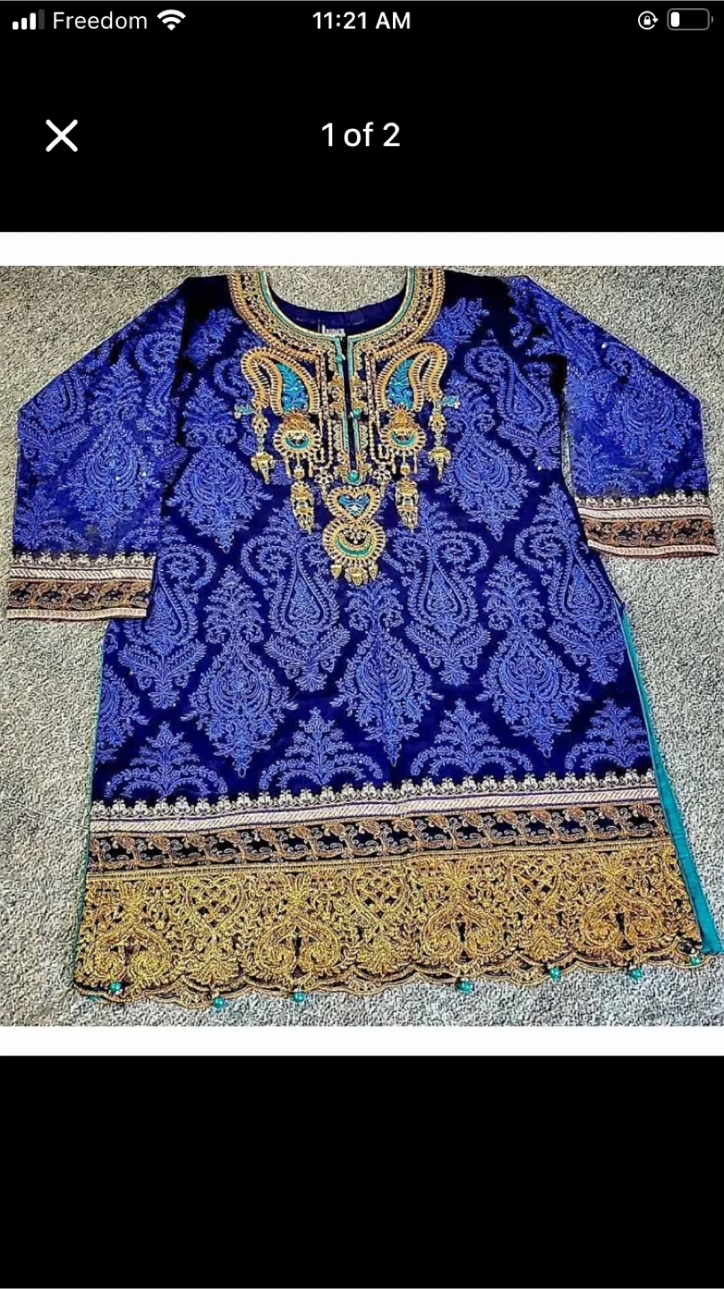 Beautiful blue kurti set with intricate embroidery. The set includes the kurti and bottoms. Perfect for special occasions or everyday wear!