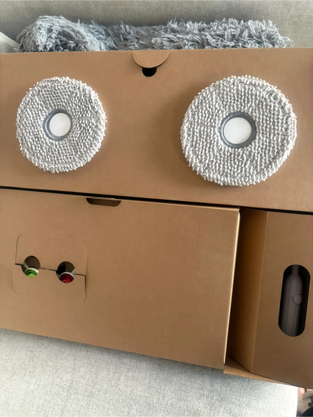 Includes robot vacuum, OMNI station, mop pads, side brushes, cleaning brush, accessories and original box.