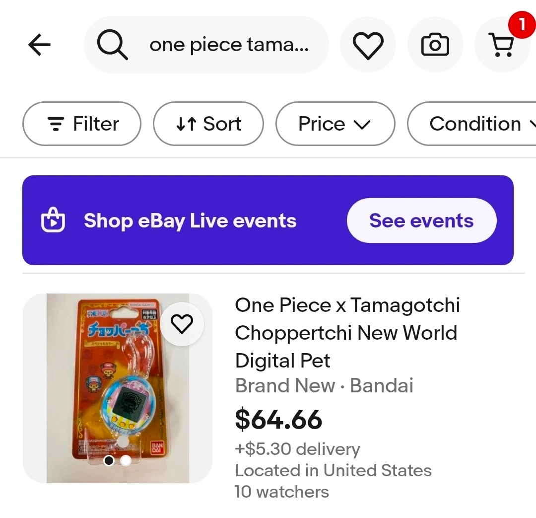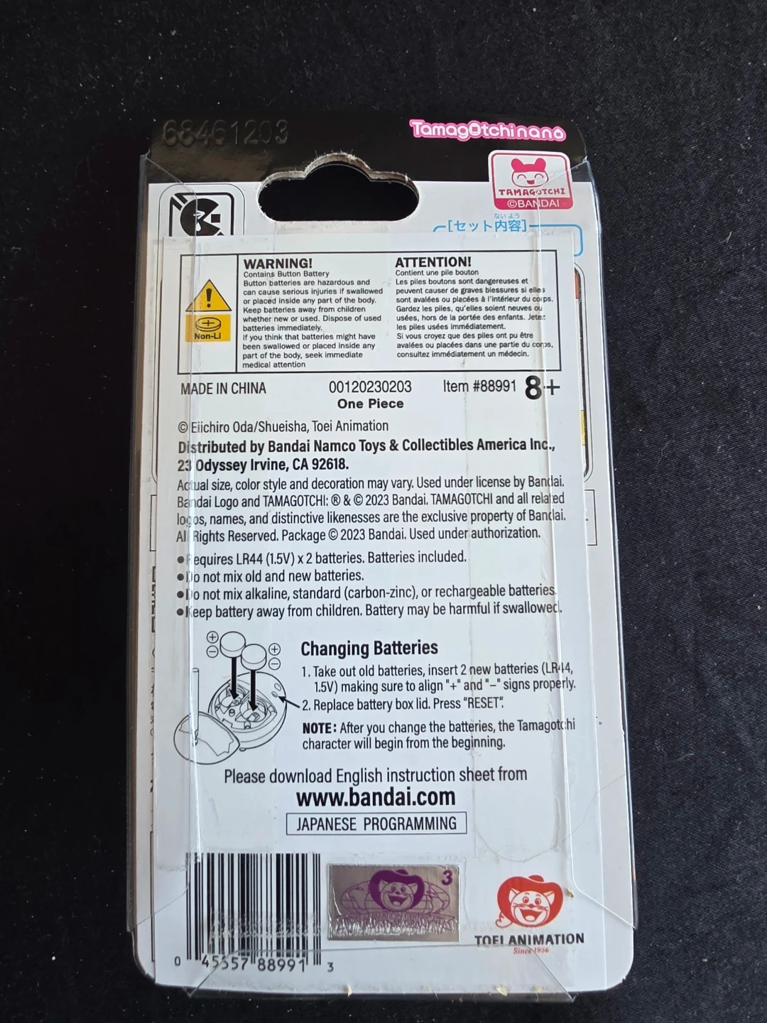 This is a new in box Tamagotchi collaboration with One Piece, featuring Chopper. It requires two LR44 batteries, which are included. Recommended for ages 6 and up.