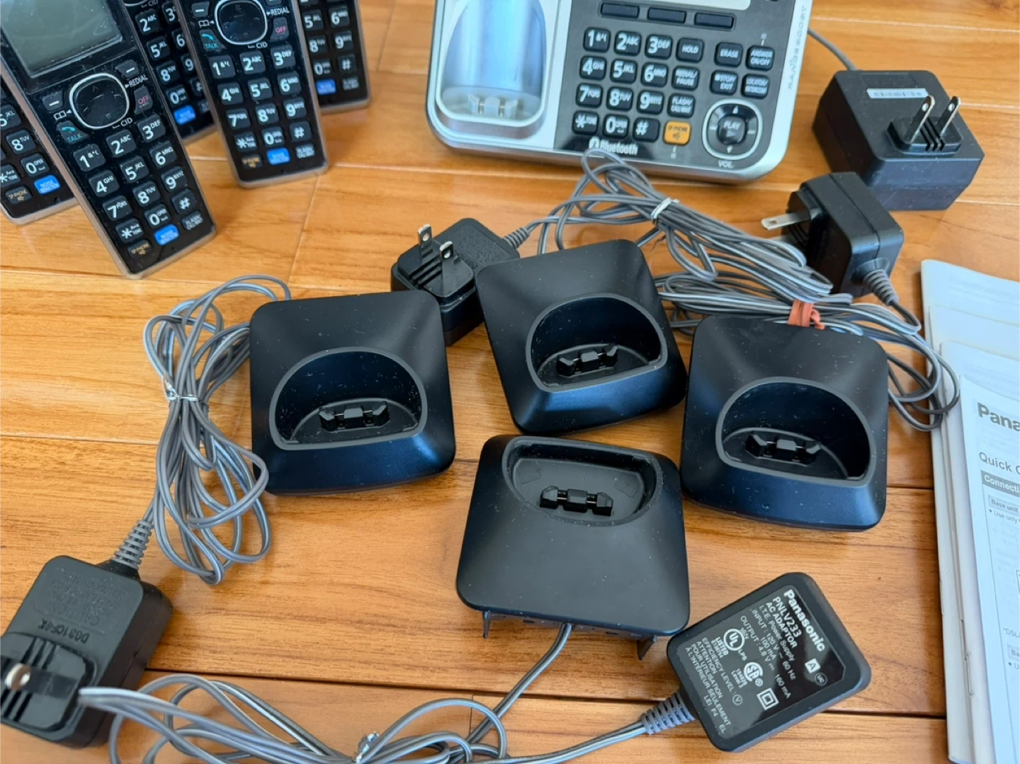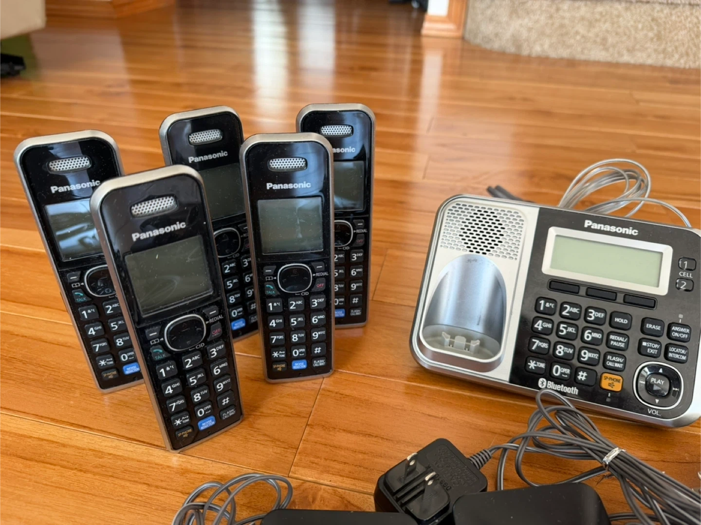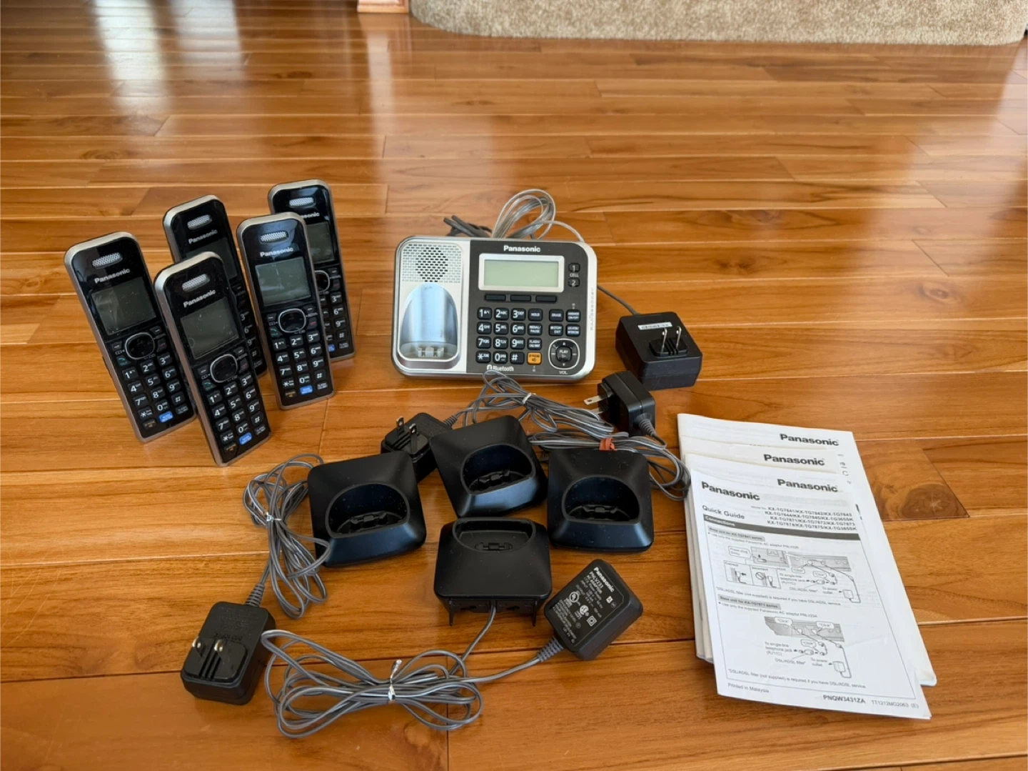 Get connected with this Panasonic cordless phone system, featuring a base station and five handsets for comprehensive coverage throughout your home or office. This system is used, but has been well taken care of and is in good working order.