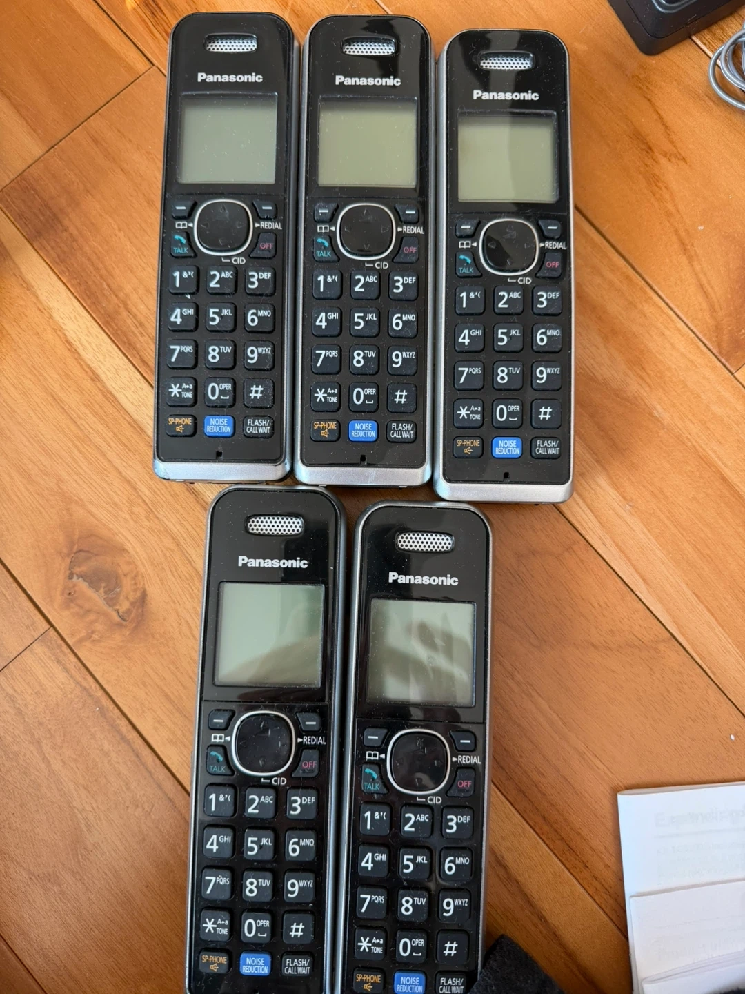 * Multiple Handsets: Includes five handsets for convenient placement in different rooms.