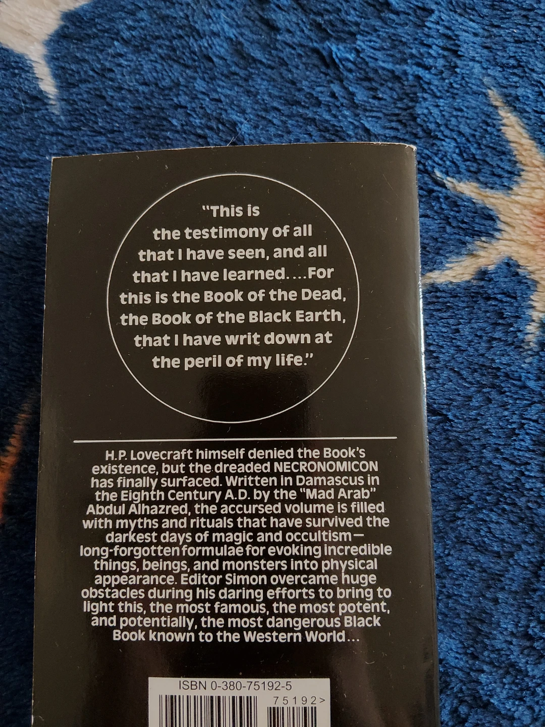 This is the testimony of all that I have seen, and all that I have learned. For this is the Book of the Dead, the Book of the Black Earth, that I have writ down at the peril of my life. Written in Damascus in the Eighth Century A.D. by the "Mad Arab" Abdul Alhazred, the accursed volume is filled with myths and rituals that have survived the darkest days of magic and occultism. It's full of long-forgotten formulae for evoking incredible things, beings, and monsters into physical appearance. This book is the most famous, the most potent, and potentially, the most dangerous Black Book known to the Western World.