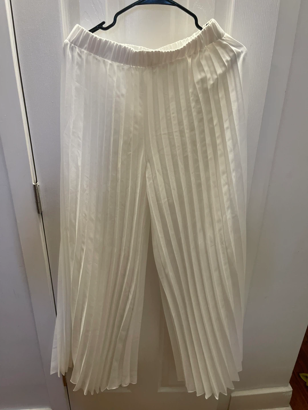 Buy & SellWhite Pleated Wide-Leg PantsWhite Pleated Wide-Leg Pants$20Flowy white pleated pants. Elastic waistband for comfort. Wide-leg silhouette.ConditionNewSizeLarge WHERE TO MEETCheck LocationView MapSELLERTeraDowntown100 reviews0 chats·0 favorites·6 viewsSEND CHAT TO SELLERHi Tera! I’m interested in your listing.Hi Tera! I’m interested in your listing.Get the Karrot app to chatSign In to chat
