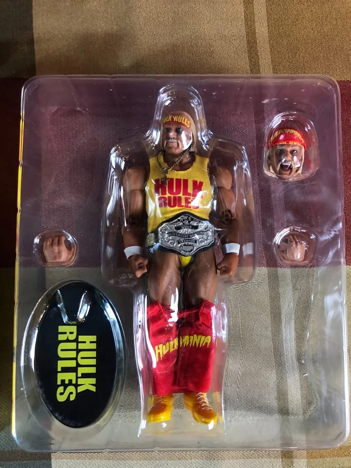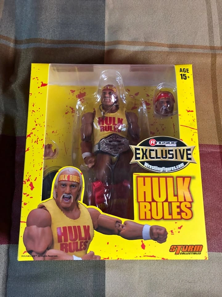 Hello, I am selling an open box Storm Collectibles Hulk Hogan from my collection. It is complete and has no damages. The figure comes with extras such as a belt, extra shirt, and headband. What you see in the pictures is what you get. Let me know if you're interested!