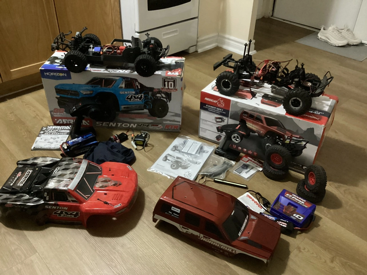 Bought these at the beginning of Covid and been sitting in the boxes ever since. Used a few times. I charged up the batteries yesterday to test them and the battery that came with the senton is no good so I bought a new battery for it. The battery for the redcat is good. Comes with everything you see in the pictures. Will separate them if needed. @ $300 each. I also have a bunch of tools and 26 rechargeable AA batteries for the controllers. Can only put 10 pictures on here. So can send more pictures if needed. Willing to trade for PS5 system with games or Nintendo switch system with games.